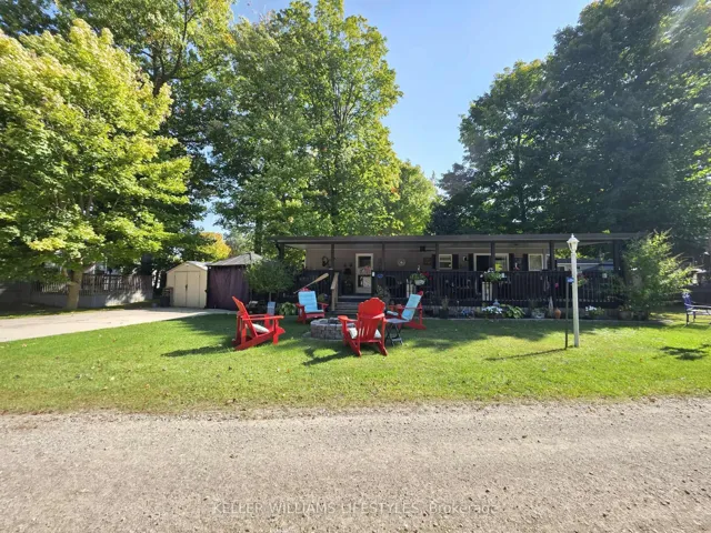 +"PublicRemarks": "Just minutes from the beach, and only 30kms to Grand Bend, this charming 2 bedroom, 1 bath park model offers the perfect blend of relaxation and recreation. In Our Ponderosa (a wonderful seasonal resort open May-Oct), nestled on a quiet cul-de-sac with only nine units with generous frontage, you'll enjoy both privacy and community. Step inside to find an open concept layout, creating a bright and spacious feel throughout. The kitchen features black appliances, while the living room is filled with natural light, perfect for entertaining family and friends. This turnkey retreat comes fully furnished, including all bedroom and living room furniture (with a queen size pull out sofa), a 55" TV in the living room, a 42" TV on the deck, and a Weber barbeque. With forced air propane heating and central air, you're sure to be comfortable. Outdoors, the large deck is equipped with over $8,000 worth of premium furniture, including a concrete dining table with six chairs, a sectional, an adjustable coffee/dining table, recliners, and side tables. A custom hard top cover with 4" posts, ceiling fan, and overhead lighting provides comfort and durability, making this 12' wide deck the ideal spot for relaxing or entertaining. Additional features include a double wide concrete driveway and a 10' x 10' curtained gazebo, currently used for golf cart storage. There are many community amenities, with a 9 hole golf course (included in annual fees), pickleball courts, two swimming pools with a water slide, splash pad, mini golf, bounce cushion, and sand volleyball court, ensuring fun for all ages. If you're seeking a summer getaway this move in ready park model at Our Ponderosa has everything you need to start making memories."