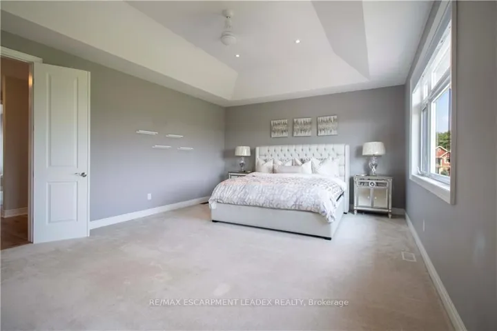 +"PublicRemarks": "Experience elevated living in this exquisitely crafted home featuring a spacious open-concept layout and designer finishes throughout. From rich hardwood floors and soaring 9 ceilings to sleek pot lighting and tailored window treatments, every detail reflects impeccable quality. The gourmet quartz kitchen impresses with stainless steel appliances, a gas range, wet bar, walk-in pantry, and a generous island ideal for entertaining. The expansive dining area flows into a sun-filled family room with a cozy gas fireplace.A private main-floor office, laundry room, and stylish powder room offer added functionality. Step outside to a professionally landscaped, southern-facing backyard oasis complete with a covered concrete patio, modern pergola, gas fire pit, and full irrigation system. Upstairs you'll find four oversized bedrooms, including a tranquil primary retreat with a spa-inspired 5-piece ensuite and custom California walk-in closet. Jack & Jill ensuite connects the second and third bedrooms, while the fourth bedroom enjoys its own private bath and walk-in.Located close to top-rated schools, scenic parks, boutique shopping, Hamilton Golf & Country Club, and easy highway access this residence offers the ultimate blend of comfort, elegance, and convenience."