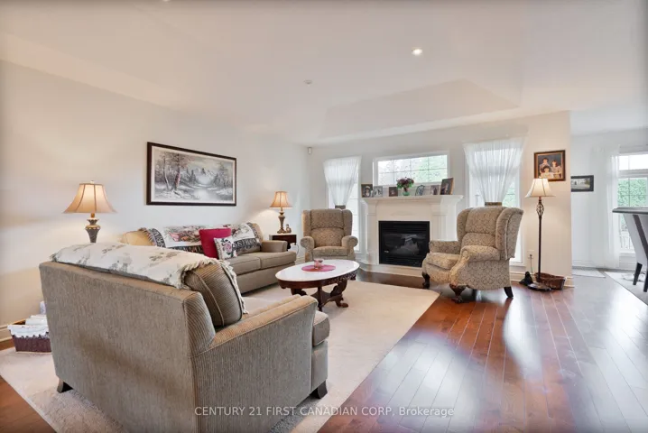 +"PublicRemarks": "Dwyers have built a stunning all-brick ranch home in Strathroy prestigious area, offering 4 bedrooms and 3 bathrooms. The finished lower level, two fireplaces, and tray ceilings add to the home's elegance, while granite countertops and hardwood floors provide a modern touch. The kitchen is well-equipped with top-notch appliances, including an induction double oven stove, refrigerator, dishwasher, washer, dryer, an additional refrigerator in the garage, and a reverse osmosis system for purified drinking water. The rear yard is a private oasis, fully fenced with a composite deck and a beautiful water feature, perfect for relaxation or entertaining. This home exudes pride of ownership and is ideal for empty nesters, families, or young professionals looking for a blend of comfort and sophistication. It truly is a must-see property!"