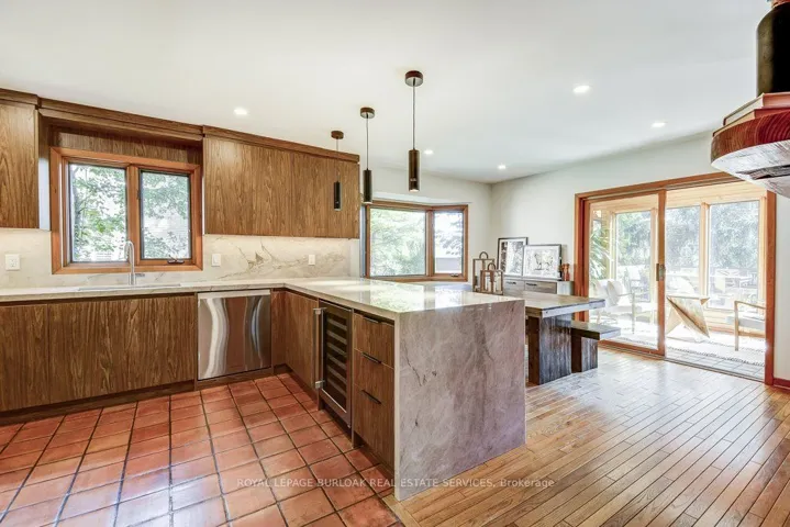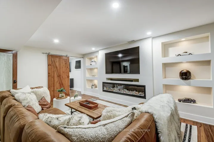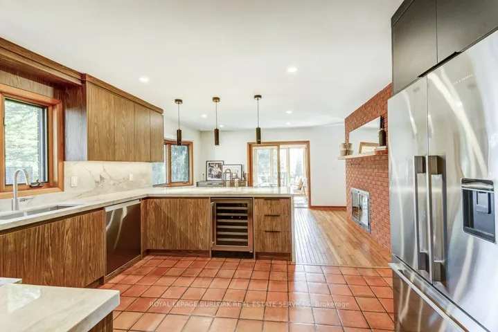 +"PublicRemarks": "Welcome to this stunning, fully renovated home in the desirable community of Fonthill. Offering over 4,100 sqft of finished living space, this immaculate residence seamlessly combines luxury & modern design, creating a perfect sanctuary for those seeking elegance & comfort. The heart of the home is the professionally designed kitchen featuring quartz countertops with a striking waterfall island, custom cabinetry, & high-end Fischer & Paykel appliances all arranged for the discerning chef. Adjacent to the kitchen, you'll find a spacious laundry suite w/a 2pce powder room, Brazilian slate floors & convenient access to the 2 car garage. The living areas exude warmth &sophistication, highlighted by a double-sided wood-burning fireplace that creates a cozy ambiance. Vaulted ceilings & exposed brick accents in the living room add rustic charm, complemented by Venetian plaster walls & rich oak floors that run throughout the home. A sunroom with skylights opens to the dining area & seamlessly connects to a large deck overlooking the backyard oasis. Upstairs, discover a charming music loft overlooking the LR below. The primary suite is a luxurious retreat w/vaulted ceilings, a private sitting loft & a spa-inspired bathroom with a double vanity, under-cabinet lighting, an egg-shaped soaking tub, & a separate shower. A spacious custom W/I closet completes this private sanctuary. The basement features a zen garden leading to a wellness area with a fully equipped gym & a 5-piece spa bathroom, including a cedar sauna for tranquil escapes. Adjacent, you'll find the man cave bar area with 2 TVs, a live-edge red oak bar, beer tap & W/O access to the backyard. The rec rm boasts a custom built wall unit, built-in TV, & a large electric fireplace, perfect for relaxation & entertaining. The backyard is a private retreat, surrounded by professionally landscaped gardens, a heated pool, hot tub, & pool house. Multi-level decks & a stone patio create the ideal setting for outdoor gatherings"