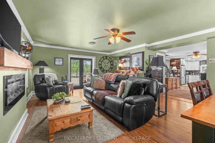 +"PublicRemarks": "Nestled in the pristine countryside is this remarkable 1.5 story country home, perfectly situated on over 17 acres of lush property. This expansive acreage also boasts a spacious, detached two-car garage with bonus living space above, ideal for guests or a private home office. The picturesque grounds further feature fenced-in areas suitable for horse riding and a three-bay drive shed for additional storage, stimulating your pastoral idyllic dreams. Stepping onto the inviting covered porch and through the front door, you are welcomed by charming hardwood floors that guide you throughout the home. The ample kitchen area offers an island for casual meals or food prep and an under-stairs pantry closet to aid with storage. Bright and warm, the dining room is adorned with large windows that offer an abundance of natural light. Adjacent lies the cozy living room, featuring patio doors that lead to the backyard deck, providing easy outside access for those warmer days and leisurely evenings. The home also hosts a main floor space that offers the versatility to be used as a bedroom or additional family room, which conveniently provides access to the yard and laundry area. The first floor also offers a 3 piece bathroom for easy convenience. On the second level, a large primary bedroom awaits with a walk-through closet and a lovely 4 piece ensuite, truly your private retreat. A communal area that can serve as a children's play area or office space leads to an additional bedroom on this level, providing the perfect compartmentalization necessary for modern living. Outdoors, the scenery is nothing short of breathtaking. Surrounded by mature trees and immaculate landscaping, this rural haven offers boundless opportunities to enjoy nature or cultivate your personal touch to make your country dreams manifest. This property encapsulates a serene and relaxed lifestyle, harmoniously combining luxury and comfort in a rural setting."