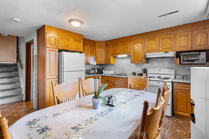 +"PublicRemarks": "Welcome to this charming North End Niagara Falls backsplit, offering exceptional versatility and value. With 3 spacious bedrooms, 2 full bathrooms, and a smartly designed layout, this home is ideal for families, multi-generational living, or investors seeking rental potential.The main floor boasts a bright living room with large windows, a cozy dining area, and a functional kitchen with plenty of cabinetry. Just a few steps down, youll find a full second kitchen and family-sized dining area with a separate entrance perfect for in-laws, guests, or creating an income suite. A comfortable lower-level family room provides even more space to relax or entertain.Upstairs, the three well-proportioned bedrooms offer comfort and privacy, along with a full bathroom. The exterior features a classic brick façade, attached garage, double driveway, and a fully fenced backyard with mature trees all set on a quiet, established street in one of Niagara Falls most desirable neighbourhoods.Located in the sought-after north end, this home is close to schools, shopping, parks, and quick highway access. Whether youre looking to settle into a family home, create rental income, or simply enjoy the convenience of a flexible layout, this property is a rare opportunity not to be missed."