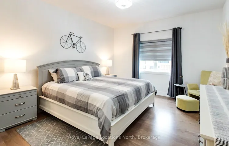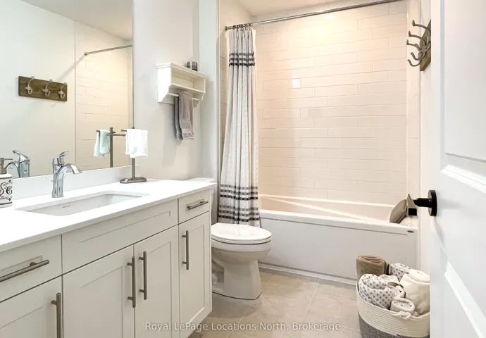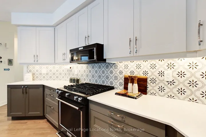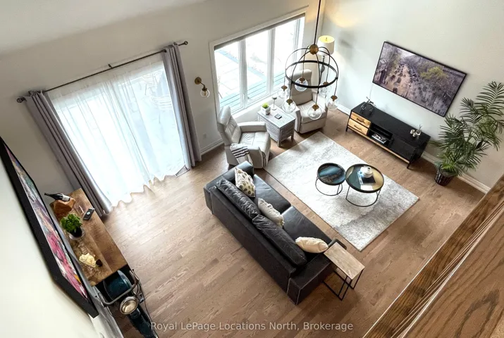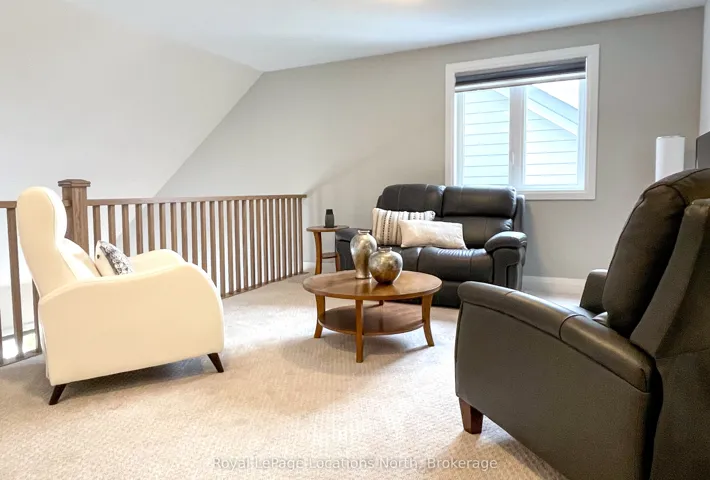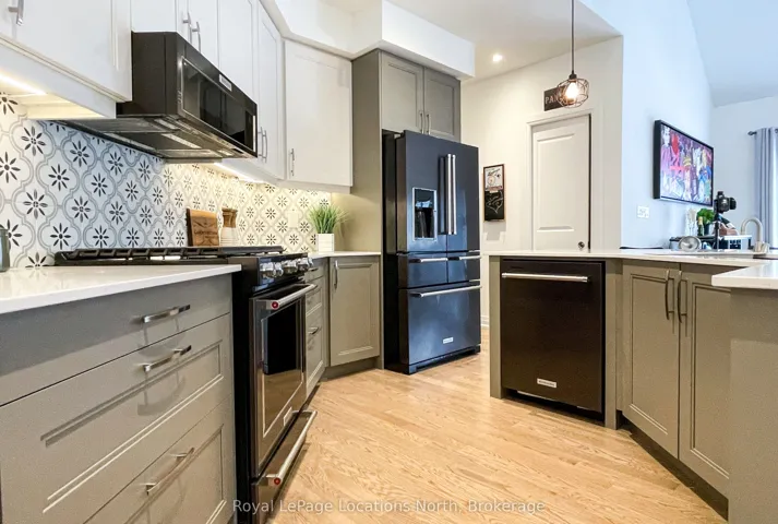+"PublicRemarks": "Welcome to The Cottages at Lora Bay a charming and friendly enclave just steps from a private, residents only beach on the stunning shores of Georgian Bay. This beautifully upgraded Aspen Model bungaloft offers 3 bedrooms and 3 baths, nestled on a quiet street just minutes from a world-class golf course and Thornbury's dining and boutique shopping. Step inside to find a bright, open-concept living space featuring hardwood floors, soaring vaulted ceilings, and an abundance of natural light thanks to the desirable southern exposure. The designer kitchen is both stylish and functional, complete with upgraded cabinetry, an extended U-shaped island with seating for five, an instant hot water dispenser, and a generous walk-in pantry. The spacious living and dining areas are perfect for entertaining, and a walk-out leads to a professionally landscaped stone patio with a motorized awning, with privacy screen, ideal for private outdoor living and summer evenings. The main floor includes a primary suite with a luxurious ensuite bath and large walk-in closet, plus a second bedroom, that could also be used as a den or office, with impressive 11-foot ceilings. A convenient laundry room is also located on the main floor. Upstairs, a lofted family room overlooks the main level, offering a cozy retreat alongside a private third bedroom and a four-piece bath perfect for guests or family. The partially finished lower level offers a fantastic recreation area, a mini Pickleball court, wine cellar/cold room and loads of storage space along with a rough-in for a future washroom and plenty of room for two more bedrooms. Bonus: gas line rough-ins for a BBQ, patio fire pit, and both living and recreation rooms, whole home surge protection & battery backup sump pump. Enjoy the relaxed lifestyle and strong sense of community in this sought-after neighborhood where friendly faces and the beauty of Georgian Bay are always close by."