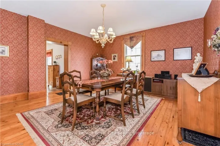 +"PublicRemarks": "The perfect mixture, 65 acres of sandy well drained, rolling farmland, a hardwood bush, a pine forest, a pond and a large home, suitable for multi-generational living if desired, all tucked perfectly into this 86 acre country landscape. There are 2 large outbuildings, one very well maintained post and beam structure with hydro and a newer detached shop(8'4"x12' sliding door), wired for all your tools. The home, combines a Century Red Brick Farmhouse, lovingly cared for, with an addition custom built a little over 15 years ago to mimic the old world charm with large wood baseboards, trim and solid wood doors. A Wood Burning Stove, Heated Floors, a Geo-Thermal forced air system and Boiler baseboard system (with rough-in for outdoor wood burning furnace). There are many economical options to keep this large home warm and inviting, and also keep the power on with the automatic, whole home Generac Generator installed in 2023. There are 3 full bathrooms, 1 powder room and another just waiting for fixtures. On the older West Wing, there are 4 possible bedrooms and on the newer East Wing, there is a main level bedroom with ensuite and a large bedroom on the upper level that could be divided (with rough-in bath). The attached 2 car garage is oversized to fit a pick-up truck and underneath the garage is a clean and dry area that is currently used as the 'cantina' for salami and wine making. The 65 acres of farmland is currently leased. This home is one-of-a-kind, a must-see with so many options, great sandy loam soil for crops and livestock, or just a country residential paradise."