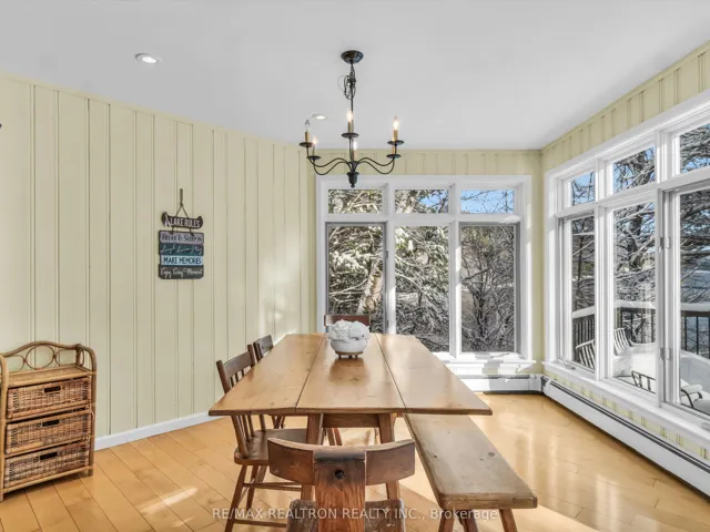 +"PublicRemarks": "Nestled on scenic Mary Lake in Huntsville's coveted Chain of Four Lakes, this fully winterized waterfront retreat offers 330 ft of shoreline and 1.3+ acres of gently sloping & level, southeast-facing land with spectacular sunrises. The spacious 4+1 bdr & 3 bath home boasts an open-concept main level w/a large eat-in kitchen, dining and family room & walkout to a new private deck with unobstructed lake views. Primary bdr features a 4-pc Ensuite and serene lake vistas, while additional bedrooms provide plenty of space for family and guests. Enjoy a cozy sunroom, firepit area, two bunkies (one for sleeping, one for storage), and a premium dock system for effortless lake access. With 40+ miles of navigable waterways, this property is perfect for boating, swimming, and fishing. Complete with a Huntsville Short-Term Rental Accommodation (STRA) license, this rare offering blends privacy, comfort, and natural beauty ideal for year-round living or investment."