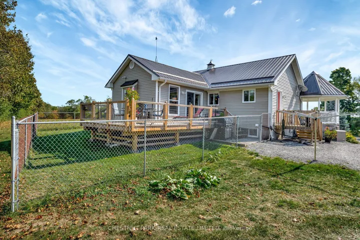 +"PublicRemarks": "Set on one of the most picturesque roads, this inviting 3 bedroom, 1.5 bath home offers a perfect blend of comfort, character & modern convenience. Overlooking neighbouring vineyards and glimpses of Lake Ontario, it embodies County living. Inside, the home is airy and bright. The spacious open-concept kitchen is beautifully updated with quartz countertops, stainless steel appliances, and sleek cabinetry that combines function with style. Updated floors add a wonderful warmth to the over all look and feel of the home. This home is perfect for family living and lively gatherings. At the back of the home, the vaulted sun room is a true highlight, a bright space where natural light pours in. Whether enjoyed as a morning coffee nook, reading spot, or evening retreat, it connects beautifully to the surrounding gardens. The upper level features three comfortable bedrooms and an updated bath, while the finished lower level provides a generous bonus space currently used as a games room. Outside, 1.5 acres of lush lawns and thoughtfully planted perennial gardens surround the home, creating a private and serene setting. A charming gazebo and full-length front porch invite you to sit back and enjoy the sweeping vineyard and lake views. Tucked among the trees, a heated artists bunkie offers endless possibilities. The double-car garage provides ample room for vehicles and storage. Recent upgrades include a durable metal roof, new natural gas furnace with air conditioning, two gas fireplaces, water softener, reverse osmosis with UV system, a standby generator, and a Dog Watch invisible fencing around the property. Perfectly located just five minutes from the vibrant village of Wellington, you'll find restaurants, wineries, and shops close at hand. Public beaches are only a short drive away, making it easy to enjoy everything the County has to offer. If you've been dreaming of country living where natural beauty meets modern comfort, this property is ready to welcome you home."