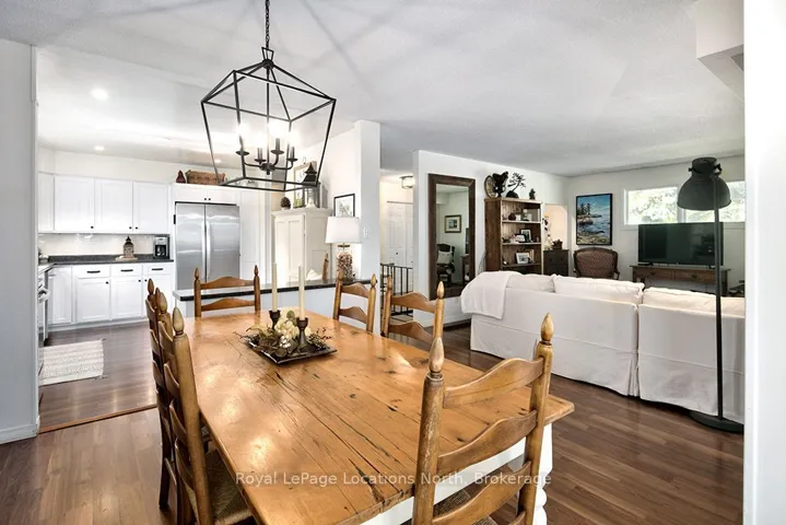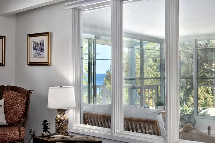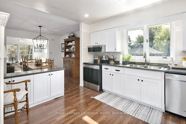 +"PublicRemarks": "Coveted Grandview Drive Location - Steps to Georgian Bay. Set on one of Meaford's most desirable streets, Grandview Drive, this beautifully renovated raised bungalow captures the essence of four-season living - where you can literally hear and see the waves of Georgian Bay from your doorstep. Perfectly positioned on a generously sized corner lot, the property enjoys idyllic water views from multiple vantage points throughout the home, and is just steps from waterfront access points for swimming, kayaking, or lakeside walks. Surrounded by mature trees and lush gardens, the home offers a peaceful, private setting ideal for relaxation and connection to nature. Inside, you'll find open-concept living designed for comfort and entertaining. The updated kitchen features stainless steel appliances and ample counter space, while the living and dining areas enjoy year round views of Georgian Bay. A cozy conversation room opens to the three-season Muskoka room, the perfect spot to unwind and take in the sound of rolling waves. The main level includes three bedrooms and an updated 4-piece bathroom, ideal for family or guests. Downstairs, discover a spacious in-law suite - perfect for extended family, guests, or rental potential. Recently completed, this lower level includes a large living room with plush carpet, a bright bedroom, and a beautiful en-suite bathroom with heated floors. The fully equipped kitchen offers space for dining and features a gas fireplace, creating a warm and inviting atmosphere. A laundry room completes the lower level, which can be accessed both from the main home and a separate entrance through the garage.An attached single-car garage keeps your vehicle protected year-round, while a garden shed provides additional storage for outdoor equipment and toys. Don't miss this rare opportunity to own a property within sight and sound of Georgian Bay, on one of Meaford' s most coveted streets - offering comfort, flexibility, and endless possibilities."