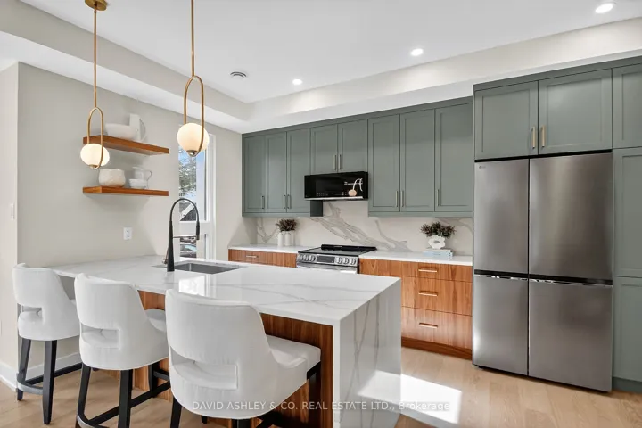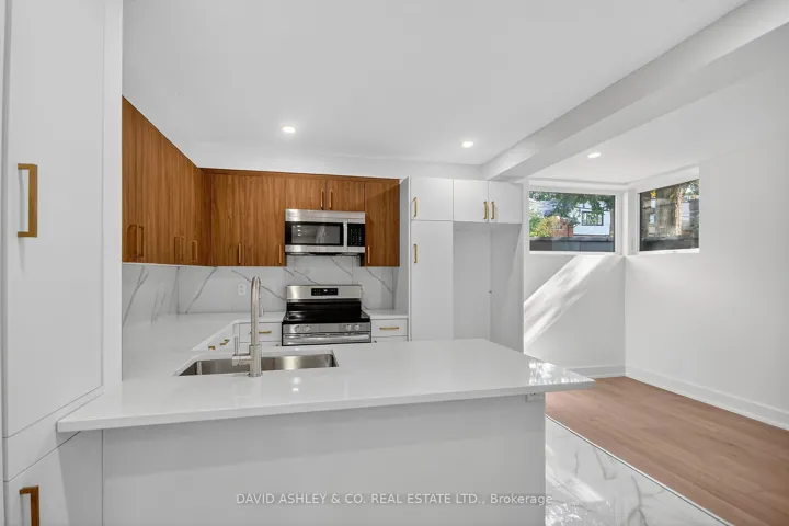 +"PublicRemarks": "Renovated 1 + 1 bedroom apartment with high-end finishes throughout. Bright and spacious lower unit with marble floors and two ensuite bathrooms. Sleek, modern kitchen features stainless steel appliances with ample storage. Ensuite laundry and a walkout to the backyard. Situated in trendy Parkdale, just minutes from the lake, High Park, and a short stroll to shops, parks, and transit.Currently being used as a 2 bedroom, and no living room."