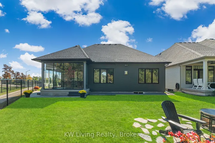 +"PublicRemarks": "Welcome to this beautifully crafted and upgraded bungalow built by Blythwood Homes, located in the highly sought-after Oaks community in Ridgeway by the lake. Known for its small-town charm, boutique shops, restaurants, scenic trails, and proximity to Lake Erie's sandy beaches, Ridgeway offers the perfect balance of relaxation and convenience. This beautifully landscaped home is ideally positioned on an oversized premium lot, backing onto the peaceful Six Mile Creek Forest, with a trail entrance beside the home that leads directly into the scenic protected forest and wetlands, a rare and tranquil setting. Inside, the open-concept main floor features bright and spacious living and dining areas. The primary suite is a private retreat with a walk-in closet and 5-piece ensuite complete with a soaker tub, shower, and double vanity. The fully finished lower level extends your living space with 2 additional bedrooms, a full 3-piece bathroom, and a large rec room, perfect for entertaining, guests, or a home office. Step outside to your private backyard featuring a custom covered porch with a glass enclosure, allowing you to enjoy forest views in comfort throughout the seasons. Built with Blythwood Homes' signature quality and nestled in the prestigious Oaks community, this Ridgeway bungalow offers a lifestyle defined by nature, privacy, and modern convenience. Don't miss this opportunity to make this your home!!!"