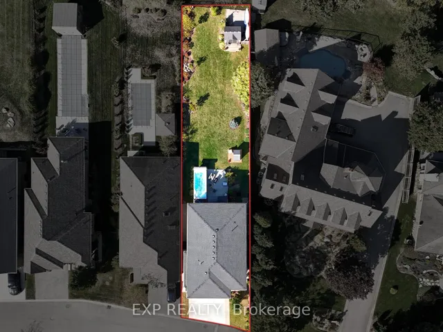 +"PublicRemarks": "Situated on a beautifully landscaped lot backing onto a scenic ravine with the Thames River below, this stunning lot measures approx 42ft wide and 180ft (plus) deep, offering a rare blend of privacy and nature. With a fully fenced backyard and an expansive heated above-ground swim spa this property is a true retreat. The oversized cement driveway allows for triple-wide parking, leading to a spacious two-car garage with a separate man-door, dual openers, and direct access to a main-floor laundry/mudroom. Inside, enjoy 9-foot ceilings and an open-concept kitchen/family room featuring a large island, granite countertops, ceramic flooring, and stainless steel appliances including a fridge/freezer combo, stove, dishwasher, washer, and dryer. The upper level features a luxurious primary suite thats a must-see. Measuring 17' x 24', it offers two large windows with views of the backyard with the Thames River beyond, an oversized walk-in closet, and a spa-like 5-piece ensuite with a soaker tub and dual sinks. Two additional bedrooms share a 4-piece bath. The finished lower level includes a rec room with two large windows, a 3-piece bath, and a bright bedroom. The lower level also features a dedicated fruit cellar and a utility space which is fitted with a natural gas furnace, central air, 200 amp service, sump pump, owned water softener, rented on-demand water heater, and a dedicated fruit cellar."