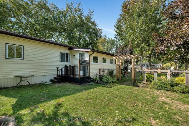+"PublicRemarks": "Welcome to this beautifully upgraded home in the highly desirable Happy Hills Retirement Community, perfectly situated with a private backyard overlooking open farmland. This open-concept residence features gleaming hardwood floors and a spacious kitchen with ample cabinetry. With approximately 1400 square feet of living space this lovely property offers 2 bedrooms plus a bright sunroom, 1.5 bathrooms (fully renovated 4 years ago), the home is designed for comfort and functionality. With Quadro fiber optics, you can enjoy seamless streaming or enjoy outdoor living on the private back deck, complete with hot tub hookup. This home also offers generous storage space beneath the home and in the shed complete with hydro hookup. Happy Hills offers resort-style amenities, including controlled gate entry, a recreation hall, indoor heated pool, and golf facilities, providing a vibrant and secure lifestyle. Note with owning a property in the retirement all year living side, you have full access to the facilities on the camp ground side during the camping season, which is ideal for your grand children. A new roof was installed October 11, 2025- which is an added bonus. Don't miss your chance to own in one of the most sought-after locations in the park. Call for your private viewing today."