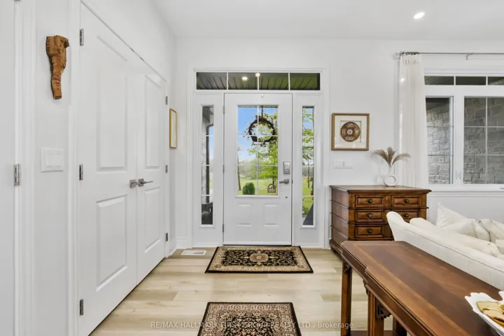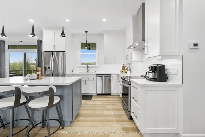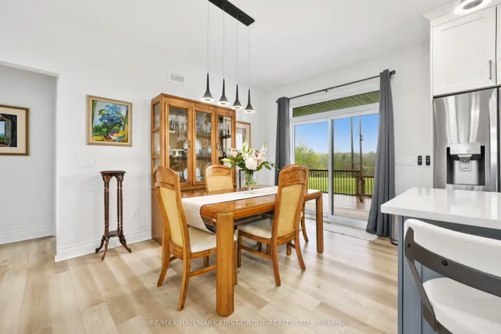 +"PublicRemarks": "This newer construction home is a stunning blend of modern design and rural tranquillity. Positioned on a generous 2.5-acre lot, the property boasts impressive curb appeal with a contemporary exterior, covered front porch, perennial gardens, and an attached double bay garage. Step into a carpet-free, open-concept living space designed for functionality and style. Dual front hall closets offer practical storage solutions for all seasons. The bright living room features recessed lighting and a built-in electric fireplace, creating a cozy yet modern atmosphere. A stylish dining area highlights contemporary lighting and a walkout to the deck, perfect for entertaining or enjoying meals outdoors. The adjacent kitchen is a showstopper, with a central island and breakfast bar, coordinating pendant lights, stainless steel appliances, a sleek hood vent, white textured subway tile backsplash, and an undermount sink. The secluded primary suite provides a peaceful retreat with a private walkout, walk-in closet, and a luxurious ensuite featuring dual vanities, glass shower enclosure and heated flooring! The main level has two additional bedrooms, a full bathroom, and a convenient laundry room with a guest bath. Downstairs, the expansive lower level offers ample storage and the potential to create additional living space tailored to your needs. Outdoors, soak in sweeping countryside views from the spacious deck, which includes both covered and open lounge and dining areas. The attached garage features a heated epoxy floor with an additional detached garage or workshop providing extra room for recreational vehicles or a home-based business. Just a short drive to town and with easy access to the 401, this property offers the perfect blend of modern comfort and rural charm."