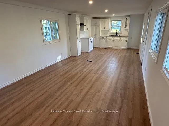 +"PublicRemarks": "Discover comfortable, affordable living in this spacious bungalow-style mobile home in Country Village Mobile Home Park, backing onto an open field with peaceful views and no rear neighbours. Enjoy a private, maturely landscaped yard, new exterior lighting, patio stone pads for outdoor living, and a welcoming enclosed front porch. Larger than it appears, the home features an inviting foyer, open-concept kitchen and living area, and a layout ideal for retirees or young families.The home offers 2 bedrooms plus addition space, 2 bathrooms including a 2-pc ensuite, walk-in closets, and blackout curtains in bedrooms. The fully renovated kitchen includes new countertops, Blanco sink, soft-close cabinetry, in-cabinet garbage/recycling, stainless steel appliances, and gas stove. Added heat in the front room ensures year-round comfort. Main bath features new backsplash and toilet, and the laundry room has updated sink and cabinetry with soft-close drawers.Mechanical includes two furnaces (one dedicated to the heated single-car garage), owned hot water heater, under-sink hot water heater in kitchen, water softener, attic and plumbing venting, and bathroom exhaust fan. Low monthly utilities average approx. $68 gas and $75 hydro.Exterior improvements include heated attached garage with bonus workshop/storage area, large rear storage structure, privacy fencing, landscaped cedars and spruce, new front door, ramp access, replaced windows and a double-wide concrete driveway with ample parking.Move-in ready with room to personalize, just minutes to Hanover and a short drive to Walkerton, offering affordability, comfort, and peaceful country-style living.Lease fees: $408/month (water included) + $25 water testing + $40 taxes = $473/month total payable to park."