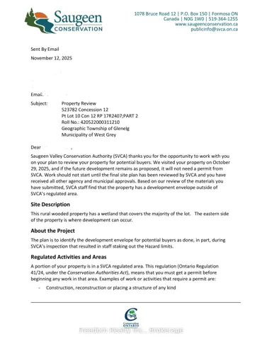 +"PublicRemarks": "Are you looking for privacy ? Then this well treed 8 Acre lot is just what you deserve as it offers various building locations and a potential walk out spot as well (there is a nice clearing in the left centre of property ). Entrance to the property is installed and there are existing pathways to facilitate a driveway to your preferred building location. Very close to Bell's Lake ( just off concession Rd 12 ). Bell's Lake is a favourite for canoeists, kayakers and fishing enthusiasts. Calm waters and peaceful surroundings make it a delightful outing. Saugeen Conservation land across the street ( nobody will be building their ). The property is approx. 12 minutes from Markdale and 30 minutes south of Owen Sound. Proposed location of home has already been approved by the Saugeen Valley Conservation Authority ( see information with attached photos ). If a different location is desired a new application can be processed. Development charges are low as well - just above $ 6,000.00."