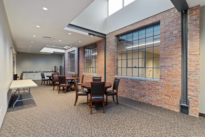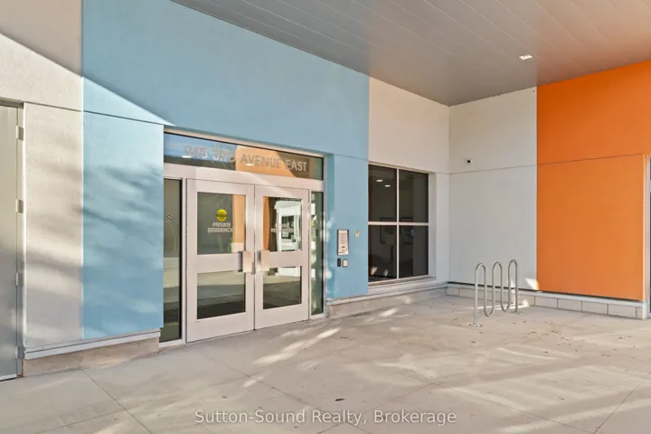 +"PublicRemarks": "Luxury Downtown Living in Owen Sound If youre looking for elegant, maintenance-free living in the heart of downtown Owen Sound, this stunning condominium is not to be missed. Offering exceptional quality with very reasonable condo fees, this unit showcases sophisticated design and thoughtful details throughout.Step inside to discover nine-foot ceilings, rich hardwood flooring, refined trim work, and a custom kitchen featuring quartz countertops and stainless steel appliances. The spacious suite includes in-suite laundry, wide 36-inch door openings, premium finishes, and a beautifully appointed bathroom with ceramic tile flooring.Enjoy an impressive list of amenities including designated parking, a large storage locker, a stylish party room with pool table and big-screen TV, a modern fitness centre, and an expansive rooftop terrace complete with three natural gas BBQs and multiple gathering spaces perfect for entertaining or unwinding with a view.Additional features include a high-efficiency natural gas furnace, air conditioning, a Heat Recovery Ventilator (HRV), and a rental natural gas hot water tank. Water and sewer are included in the condo fees for added convenience.Experience the best of urban living in this well-appointed, move-in-ready suite. Book your private showing with your REALTOR today!"