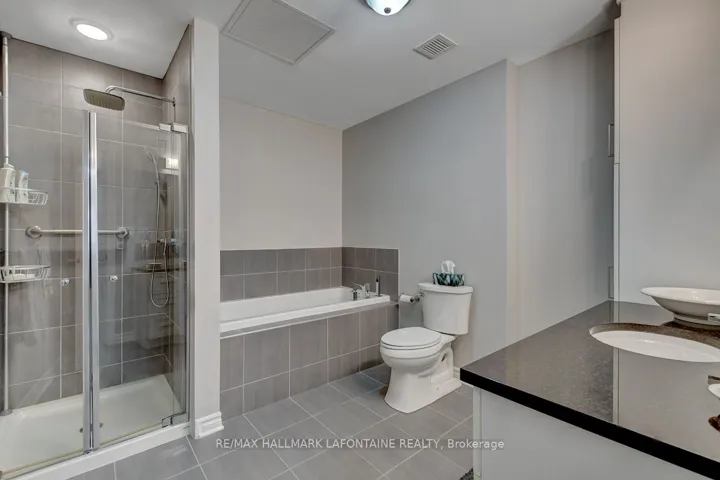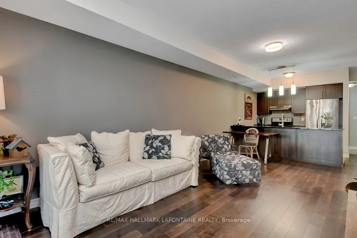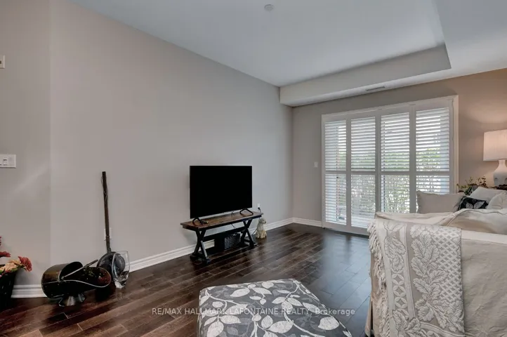 +"PublicRemarks": "Welcome to Petrie's Landing! This spacious and thoughtfully designed 2-bedroom condo combines modern comfort with a fantastic location. Enjoy effortless access to transportation and the beautiful Ottawa River trails just steps from your door.The bright, open-concept living and dining area features engineered hardwood flooring, California shutters, and sliding doors that lead to your private terrace - perfect for morning coffee or evening relaxation. The kitchen boasts granite countertops, a breakfast bar, stainless steel appliances, and a stylish backsplash.The generous primary bedroom includes a luxurious ensuite with a soaker tub, separate shower, granite counters, and ceramic tile flooring. A second full bathroom with matching finishes conveniently connects to the in-unit laundry room.Nestled on the quiet side of the building, this condo is surrounded by greenery and even has a small park right out front. A wonderful blend of nature, style, and convenience come see it for yourself!"