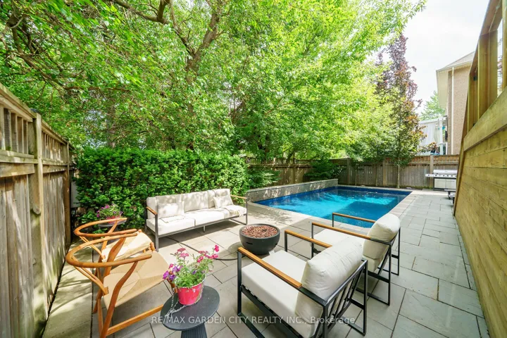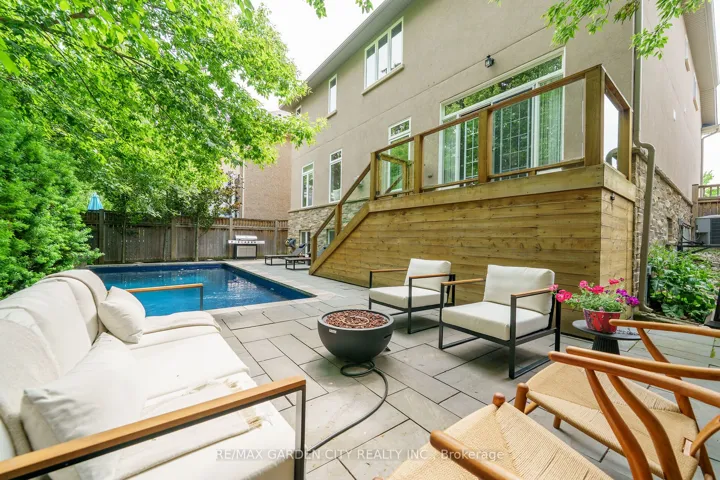 +"PublicRemarks": "STUNNING MODEL HOME WITH OVER 4000 SQUARE FEET OF LUXURIOUS LIVING. Four Bedrooms, 5 Baths with in-ground, heated, saltwater pool. Located in most sought-after Cherrywood Estates among other Luxury Homes. Featuring: 10 foot ceilings, crown mouldings, recessed lighting, hardwood floors. The unique open-concept design & spacious principal rooms are ideally suited for hosting & entertaining. The gourmet kitchen with high-end appliances, abundant cabinetry, large island, butler's pantry & quartz counters is open to Great Room with soaring ceilings, gas fireplace & large windows overlooking the very private fenced backyard oasis with deck, in- ground, heated pool & patios surrounded by mature trees. Main floor office, main floor laundry. Staircase to upper level leads to spacious primary bedroom suite with spa-like 5 PC ensuite bath, wall to wall built-in cabinetry & walk-in closet. Open staircase to lower-level leads to bright & beautifully finished rec room with 9 foot ceilings, bath & ample storage. OTHER FEATURES INCLUDE: C/air, C/vac, garage door opener, new washer and dryer (2023), new pool liner (2025), new pool heater (2021), finished basement (2020), custom drapery (2018), new laundry cabinetry (2023), Kitchen countertops (new 2018). Wine fridge, pool equipment, gas fireplace, built-in microwave, Jack & Jill 5PC bath. Less than 5 minutes to QEW, steps to park with short stroll to school & conveniences. This elegant home shows pride of ownership and is meticulously maintained inside & out with attention to every detail!"