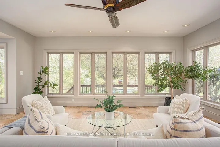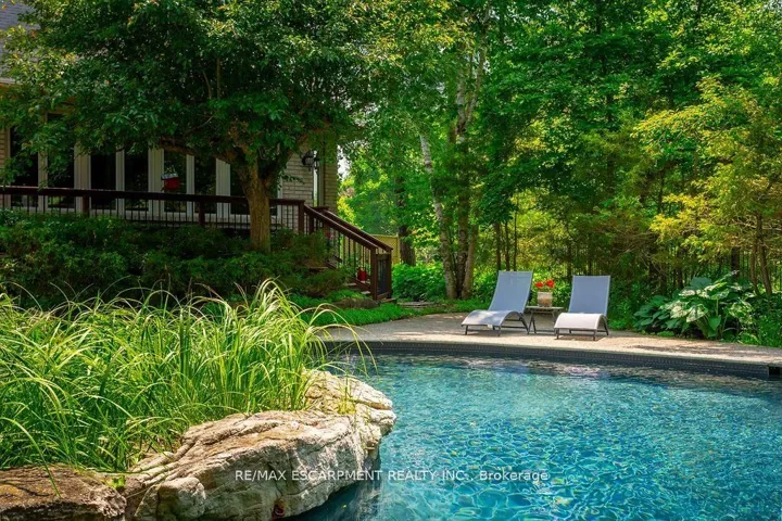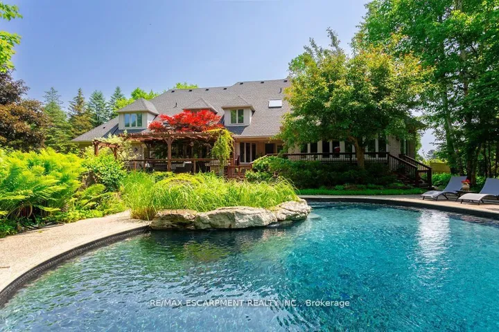 +"PublicRemarks": "The pinnacle of privacy. Discover a rare sanctuary where extreme seclusion meets modern sophistication. Tucked away at the end of an exclusive cul-de-sac in the village of Carlisle, this 2.12-acre estate is surrounded by forest and farmland, offering a level of tranquility and security increasingly rare in the GTA. Designed for the modern family and work-from-home lifestyle, this residence offers over 7,791 sq ft of timeless design. A soaring two-storey foyer sets the tone, complemented by two dedicated libraries or offices ideal for remote executives or business owners. The expansive floor plan transitions seamlessly from productive workdays to refined entertaining and family living. The light-filled chef's kitchen features custom cabinetry, soft-close drawers, a wood island, marble countertops, premium appliances, and a generous breakfast area. A vaulted great room opens to an oversized sunroom with panoramic views of the private backyard. The upper level offers a secondary library or office leading to the luxurious primary suite with spa-inspired ensuite, soaker tub, rain shower, and expansive dressing room, along with three additional spacious bedrooms and a five-piece bath. Meticulously updated for complete turn-key peace of mind, the home features a high-efficiency furnace and AC (2024), an upgraded chef's kitchen with most appliances replaced in 2024, EV charging in the three-car garage, and a raised vegetable garden. Resort-style backyard living includes a saltwater gunite pool with cascading rock waterfall, hot tub, expansive deck, and pergola. The fully finished walk-up lower level with private entrance offers exceptional versatility for a multi-generational suite, guest wing, or private wellness studio. Experience the stillness of your private two-acre forest in all four seasons. LUXURY CERTIFIED."