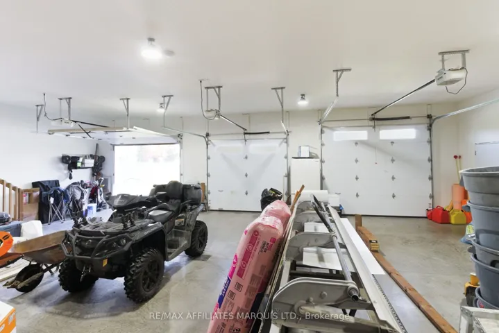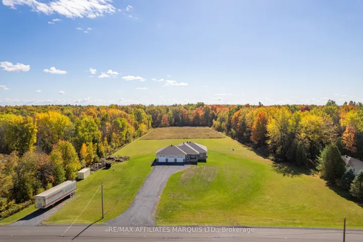 +"PublicRemarks": "Impressive 2024 custom-built 4-bedroom bungalow offering approximately 1670 Sq.Ft. of living space, set on a beautiful 7.5-acre country lot. Built on a full ICF foundation with 9' basement ceilings and equipped with a Generac backup generator capable of powering two homes, this property combines craftsmanship and efficiency throughout. The open-concept main level showcases a stylish kitchen with birch soft-close cabinetry, built-in double oven/microwave, large centre island, and coffee bar, flowing seamlessly to a bright living room with custom entertainment unit and access to a covered rear porch. The 1250 Sq. Ft. triple attached garage impresses with in-floor heating, arena lighting with three dedicated breaker zones perfect for shop work. Heating is supplied by an outdoor remote Heatmor wood furnace and or propane that also provides domestic hot water and in-floor radiant heat to both the home and garage. Additional highlights include over-insulated attic, in-floor basement heating with separate garage access, pre-run conduits for future Fibe/internet, gas BBQ hookups, full home network wiring, multiple Wi-Fi boosters, and a security system with backup power. Approval for secondary dwelling or shop therefore well and septic are designed for future expansion with a second driveway in place making this an exceptional opportunity to enjoy modern country living with superior utility systems and thoughtful design. Please allow 24hr irrevocable on all offers."