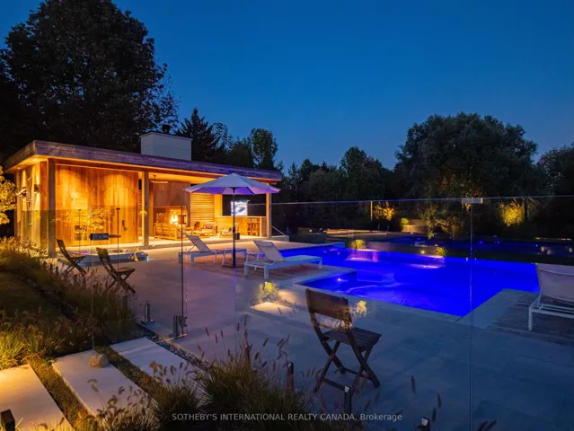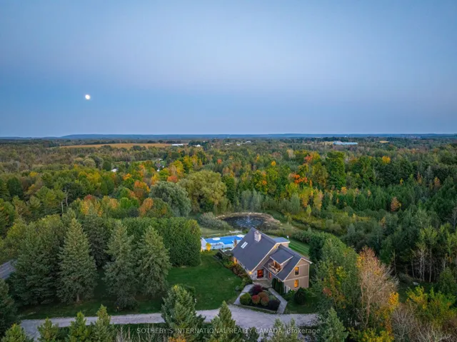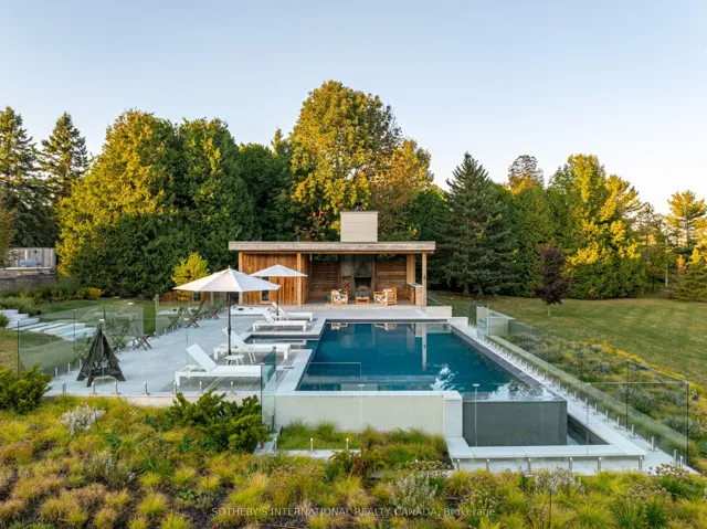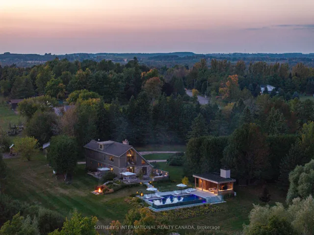 +"PublicRemarks": "A world of timeless sophistication and unparalleled exclusivity unfolds. Nestled on 18 secluded acres, this estate boasts over 5,450 sqft of exquisitely designed living space, set against the backdrop of a mature forest. Every step onto this estate unveils an extraordinary lifestyle. The moment you arrive, panoramic views of the water, Miami-style modern landscaped pool area, & woodland greet you, centering around your private pond. Meandering trails weave through the untouched serenity of nature, offering an idyllic escape for exploration & tranquility. Crafted with a superior level of artistry and bespoke finishes, this freshly painted home combines timeless design with modern functionality. The grand primary suite serves as a personal retreat with its sitting room, a private balcony, and views that inspire morning reflection or evening serenity. The heart of the home is its gourmet kitchen, complemented by four well-appointed bedrooms & five bathrooms. Invision, unwinding by a stunning wood-burning fireplace, beautifully set against a dramatic stone wall. Whether it's the soft crackle of the fire or the serene views of your outdoor haven, every moment here invites you to relax, recharge, & revel in the luxury of your surroundings. This estate is a true entertainer's dream. Seamless indoor & outdoor venues, meticulously landscaped designer by Leigh Gravenor, with multiple lounging areas, outdoor kitchen, 2520 sqft of reflective glassed-in pool area with an infinity edge saltwater pool. An elegant covered cabana provides a wood-burning fireplace, pop-up TV, sauna, wet bar, changing room, two-piece bathroom, and outdoor shower. The rejuvenating hot tub integrates into your private resort-like haven. Enjoy exclusive amenities including private trails, fishing, & skating, all designed havens for discerning nature lovers seeking the pinnacle of luxury living. Conveniently located 1 hr from Toronto, minutes to TPC Toronto at Osprey Valley golf course & Caledon Ski Club."