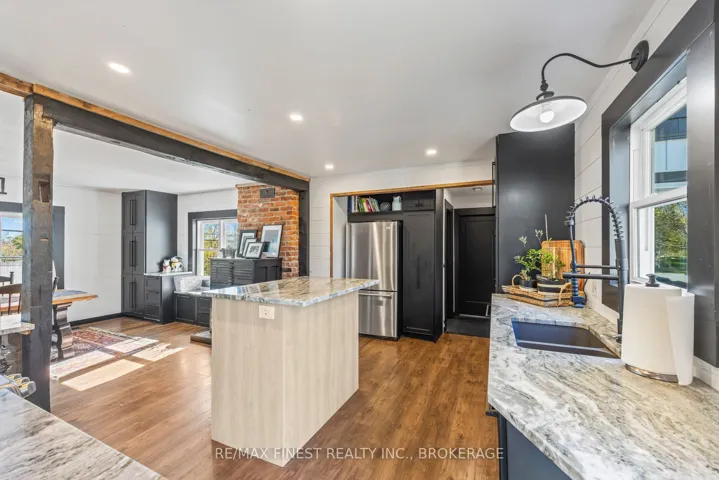 +"PublicRemarks": "WOW!! This beautifully renovated home less than 10 minutes from Kingston features an incredible combination of new and old! The main floor features a new open concept, kitchen and dining area with stainless steel appliances, stone countertops, exposed beams, vaulted ceiling in the living room with an elegant staircase to a bonus room in the loft for office space or an extra bedroom, 2 gorgeous bedrooms each with their own 4pc en-suite bathrooms and 1 with a walk-in closet and patio door to the backyard oasis. The lower level features a double garage with interior access to an additional bedroom, rec room with gas fireplace, another 3pc bathroom and plenty of space for a kitchen to complete an amazing IN-LAW SUITE if desired. Don't miss out!!"