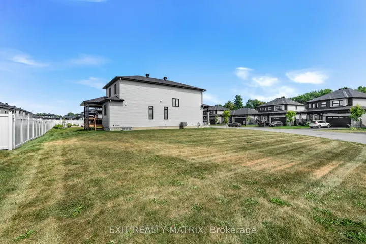 +"PublicRemarks": "Stunning Modern Home on Oversized Corner Lot in Embrun! Welcome to your dream home, perfectly nestled on an oversized 184-ft corner lot in one of Embruns most sought-after neighbourhoods! This beautifully designed property offers high-end finishes, incredible living space, and a layout tailored for modern comfort and style. Step inside to discover a bright, open-concept main level that's both stylish and functional. The elegant dining area and cozy living room - complete with a charming fireplace and sun-filled windows - set the tone for warm gatherings and everyday living. The sleek, modern kitchen is a showstopper, featuring a sit-at island with a waterfall counter, abundant cabinetry, and premium finishes throughout. You'll also find a main floor office, garage access, and a convenient partial bathroom, ideal for busy households. The garage is fully finished, perfect for a home gym, workshop, or bonus living space. Upstairs, you'll find three spacious bedrooms, each with a walk-in-closet, and two bathrooms, including a luxurious primary retreat with a spa-like ensuite, boasting a glass shower, soaker tub, and double vanity. The basement offers an additional bedroom and potential for even more space with a rough-in for a bathroom already in place. Outside, enjoy summer evenings on your lovely backyard deck and take in the privacy and space of your generously sized yard, perfect for entertaining or relaxing. Located near parks, schools, and everyday amenities, this home truly has it all. Don't miss your chance to own this stunning property in the heart of Embrun!"