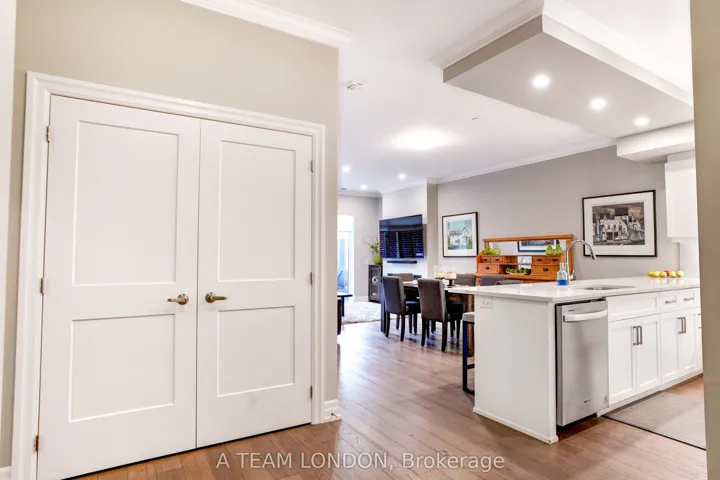 +"PublicRemarks": "Experience elevated condo living in one of Londons most desirable communities North Link by TRICAR, perfectly located off Sunningdale and near the London Golf Club. This stunning accessible 2-bedroom, 2-bathroom condo is only three years young and move-in ready, offering modern elegance with thoughtful design throughout. Featuring lower light switches, wider doorways, and a barrier-free tub and shower, this home combines comfort, style, and accessibility. High ceilings, engineered hardwood floors, and sleek pot lights create a bright, contemporary feel. The open-concept living area boasts a stylish electric fireplace and a defined dining space, ideal for entertaining. The kitchen impresses with fine cabinetry, quartz countertops, a tile backsplash, and a convenient pantry. A floor-to-ceiling door fills the space with natural light and opens to a spacious balcony overlooking scenic trails the perfect place to unwind. Enjoy the convenience of in-suite laundry, stainless steel appliances, window coverings, two underground parking spots, and a storage locker. Building amenities include a fitness room, golf simulator, resident lounge, guest suite, and secure entry. Step outside to enjoy the exclusive sports court or outdoor patio overlooking Medway Valley. The building is pre-wired with fibre internet and CAT 5E data lines, and features energy-efficient heating and cooling with programmable thermostats. Condo fees include all utilities except hydro for added peace of mind. Conveniently located near Masonville Mall, University Hospital, and Western University, North Link offers the perfect balance of luxury, location, and lifestyle. Book your private showing today and discover the ease of accessible luxury living."
