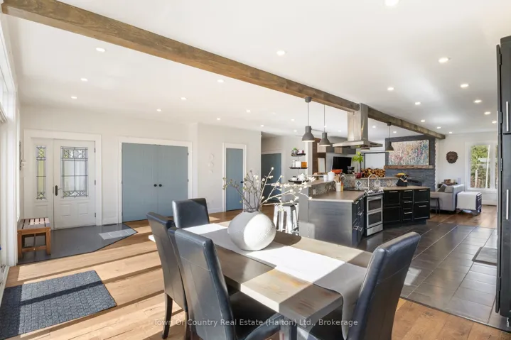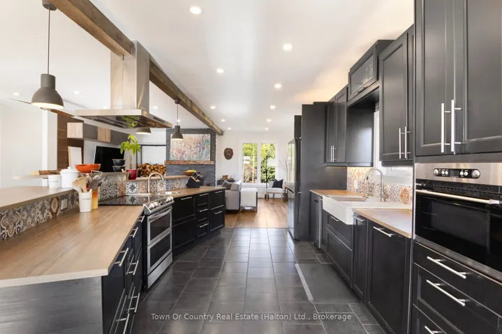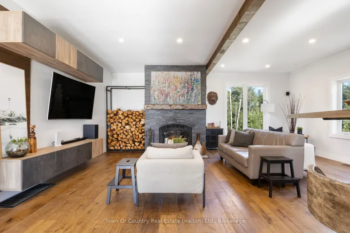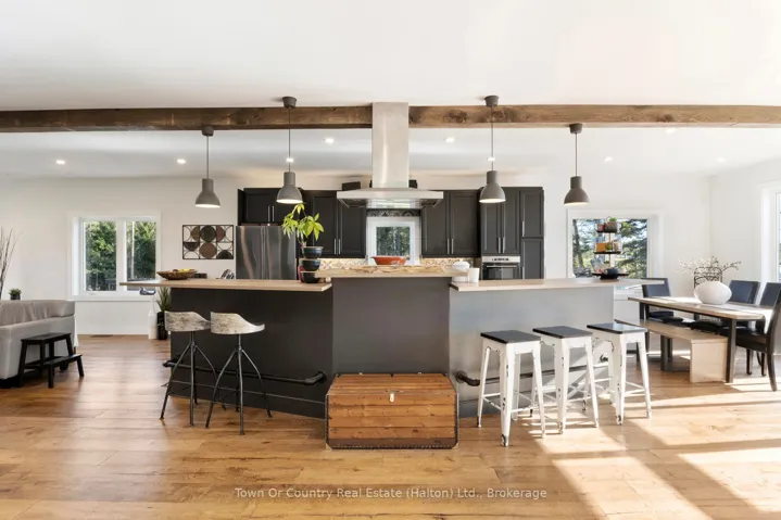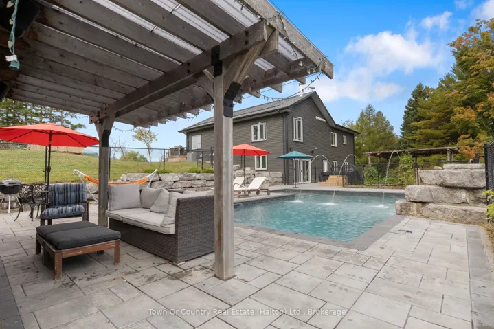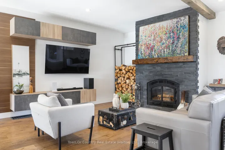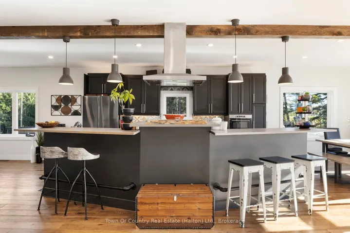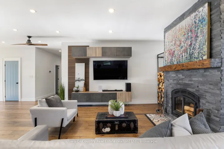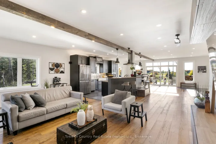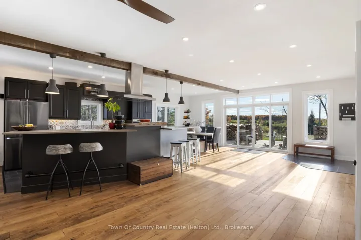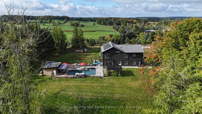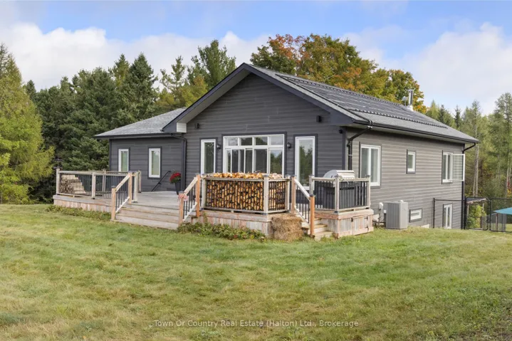 +"PublicRemarks": "Welcome to 5041 Third Line in the south end of Erin - where comfort, style, and serenity come together on a sprawling 1.4-acre homestead tucked into nature. This custom-built 2017 bungalow blends modern elegance with warmth. With 3 bedrooms, an office, and 3.5 baths, the layout offers both space and intimacy. The main floor is bright and open, featuring oversized windows that flood the home with natural light and frame views of the private backyard. A floor-to-ceiling wood-burning fireplace, ducted into the central air, offers cozy charm and efficient heat. The kitchen and dining area are perfect for gatherings, with sleek appliances and space for an oversized family table. Downstairs, the fully finished walk-out basement feels like a home of its own - complete with a family room, private office, generous storage, and a separate entrance to the side yard. Ideal for multi-generational living, games nights, or a future in-law suite. Outside is your own private retreat: a landscaped pool with a rock waterfall, stone interlock lounging areas, and a firepit surrounded by trees. Terraced hardscaping and wooded privacy make the backyard perfect for entertaining or quiet reflection. The heated 3-car garage offers space and comfort year-round. And while this peaceful retreat feels far from it all, you're only 10 minutes from groceries, shops, trails, and your daily coffee at Tim Hortons. Whether you're seeking space to grow, room to host, or just a quiet place to unwind - this home truly has it all. See attachments for survey, floor plans and property details."