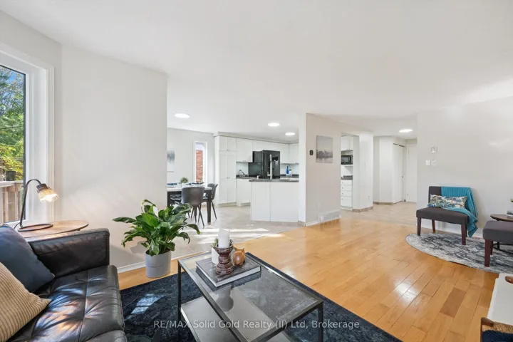 +"PublicRemarks": "Welcome to this bright and spacious 3+1 bedroom, 2.5 bath home located on a quiet street in a highly desirable Waterloo East neighbourhood close to schools, parks, shopping, & convenient highway access. The open-concept main floor features a guest bathroom, hardwood & tile flooring, a gas fireplace, an updated kitchen & sliders from the dining area leading to a new deck & patio overlooking the fully fenced backyard with storage shed, ideal for outdoor entertaining. Upstairs, you'll find new luxury click vinyl flooring, a large primary bedroom with walk-in closet, & an updated main bath complete with a soaker tub, separate shower, & double sinks. A second bedroom also features a walk-in closet, providing ample storage. The finished basement offers a 4th bedroom, a 3-piece bathroom, & a versatile space perfect for a home office or workout area. Additional highlights include a double-wide driveway with parking for four vehicles, a 1.5-car garage with Tesla charger, rough-in for central vac, an on-demand water heater, a gas-line to your BBQ & a newer furnace & A/C (2017). This well-maintained home offers comfort, efficiency, and modern updates throughout-an excellent opportunity in a sought-after Waterloo location!"
