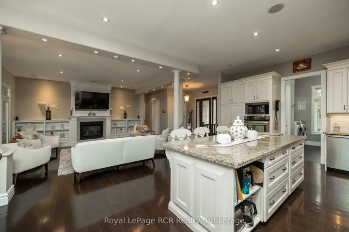 +"PublicRemarks": "Luxury meets country in this one of a kind brick bungalow situated on just under 2 acres. With over 4000 sq ft of living space, this home has a lot to offer! The open concept main floor includes the living room with a propane fireplace, built in shelving and a double door walk out to the covered porch. There is an ample sized kitchen and dining area with nice finishes, plenty of cupboard space and a walk out to the covered deck. The master bedroom has nice views from the windows, an electric fireplace for those cozy nights, a walk out to the covered porch. Spacious 5pc ensuite and large walk in closet to finish it off. One more bedroom, a den, 4pc bathroom, powder room and mudroom with laundry complete the main floor. The lower level has potential to be converted into an in-law suite and features a recently upgraded chef's kitchen with top of the line built-in Thermador appliances, custom cabinetry and a spacious island. There are two full bathrooms, one 3pc including a soaker tub and matching vanity and make up station, and the other 3pc with a large custom made walk in shower and vanity. The two bedrooms feature custom closet organizers and cabinetry. Along with a pantry and an office, the lower level also features a living room with a propane fireplace and walk out to the covered patio complete with a hot tub! The home has a 2 car attached garage on the main level and a bonus underground garage space utilized as a gym. The lot is nicely landscaped and with an efficient geothermal heating and cooling system, there's nothing left to do but move in!"