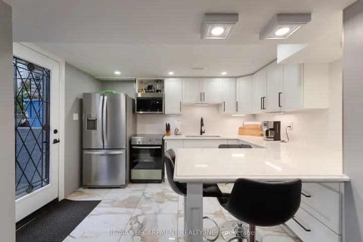 +"PublicRemarks": "Versatile and move-in ready raised-ranch bungalow in Gershome featuring a fully self-contained in-law suite with separate walk-out entrance. Two beautifully finished kitchens (quartz counters, stainless appliances), two designer bathrooms, two laundry areas. Engineered hardwood extends through the open-concept main level, along with pot lights and crisp trim. Systems renewed: furnace, AC, roof, insulation, windows, doors, garage, eavestrough. Outdoors, enjoy a steel-roofed gazebo, luxury playhouse, exposed aggregate patio, gas BBQ hookup, sprinkler system, new fencing. Easy access to schools, parks, transit, and Red Hill Parkway. Main floor den easily converts back to 3rd bedroom."