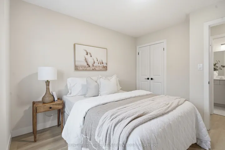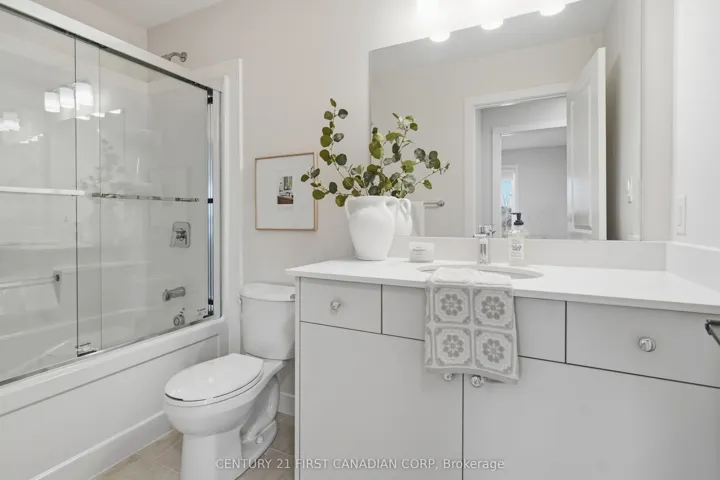 +"PublicRemarks": "Bright, nearly new townhome with a double garage in one of Oakville's most sought-after communities, just minutes to Oakville Trafalgar Hospital. This beautifully maintained 3-bedroom + office, 2.5-bath home offers a thoughtfully designated layout with no wasted space, featuring hardwood and ceramic flooring throughout. The stunning white kitchen is the heart of the home, complete with stainless steel appliances, quartz countertops, walk-in pantry, and ample cabinetry. Open concept dining area walks out to as oversized deck with sunny exposure, perfect for entertaining or relaxing outdoors. Upstairs, the spacious primary bedroom features a charming Juliet balcony, a large walk-in closet, and a private ensuite with quartz counters and a stand-up shower."