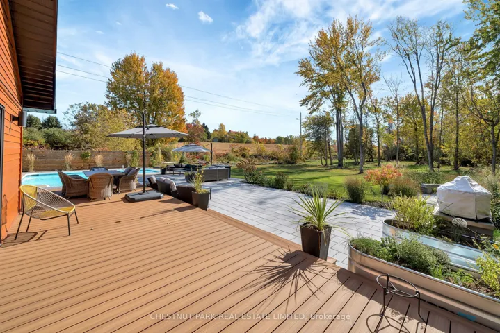 +"PublicRemarks": "Discreetly set back from the road and enveloped by green space, this masterfully reimagined residence offers over 1,800 SQ FT of sophisticated single-level living, meticulously renovated with both modern luxury and enduring materials. Every element from the Trex composite decking to the custom millwork has been executed with a thoughtful eye for detail and a deep respect for craftsmanship. Inside, soaring ceilings, shiplap accents, and engineered hardwood floors lead you through a gracious open-plan design where the kitchen, dining, and living areas flow effortlessly for entertaining or quiet evenings at home. The bespoke kitchen, adorned with sleek cabinetry and premium appliances, anchors the heart of the home, while expansive windows frame the surrounding haven and flood the interior with natural light. Three well scaled bedrooms, including a generous primary suite with walk-in and spa-like ensuite, offer serene retreats. Generous secondary bedrooms and a full guest bath extend the home's capacity for comfort and flexibility. Electrical and plumbing systems have been fully upgraded, including a state-of-the-art water filtration setup and Intellidrive pressure system. Beyond the interiors, a saltwater pool glistens as the catapult into a backyard oasis with an invitation to relax, entertain, and immerse in the luxury of outdoor living. Exterior updates elevate livability and include new siding, roofing, patios, walkways, and integrated landscape lighting create a setting that is both polished and inviting. The attached double garage won't disappoint while adding convenience, storage, and potential for additional creative / work at home pursuits. Perfectly positioned on the edge of Picton and central to The County's most celebrated destinations, this home is a turn-key invitation to embrace refined County living. In every sense, it is ready to be experienced."