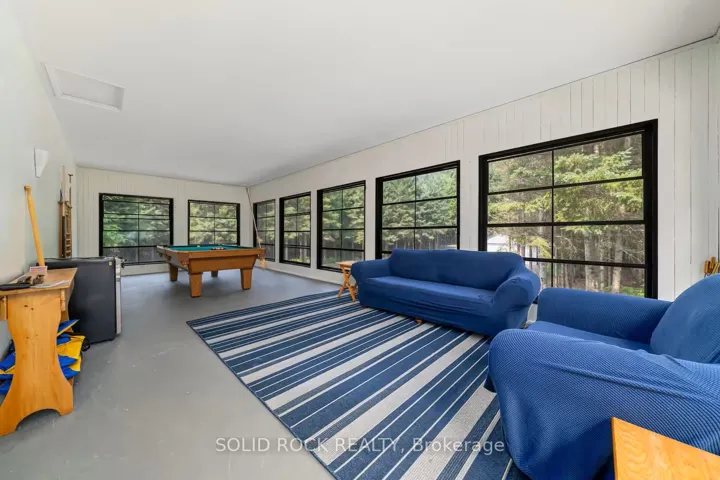 +"PublicRemarks": "Being Sold By Lender under Power of Sale. Spectacular 82-acre private retreat with over 3000+ feet of waterfront on Lower Beverley Lake! Perfect for an investor looking to subdivide future buildable lots or for use as a multi-generational retreat where each generation can build its own cottage. This completely renovated 4-bed, 3-bath open-concept home offers over 3,000 ft of shoreline with panoramic lake views. Features include a brand-new gourmet kitchen, hardwood flooring, 3-season sunroom, and walkout lower level with gym/theatre area. Extensive upgrades: new heat pump, propane furnace, EV charger, tankless HWT, smart systems, and Starlink internet. Outdoor living at its finest with a 1,000 sq. ft. two-level deck, fire pit, double garage, and private dock. Trails wind through hardwood forest for hiking, sledding, or skiing. Conservation zoning offers tax benefits and future development potential. Minutes to Elgin-your private lakeside sanctuary awaits!"