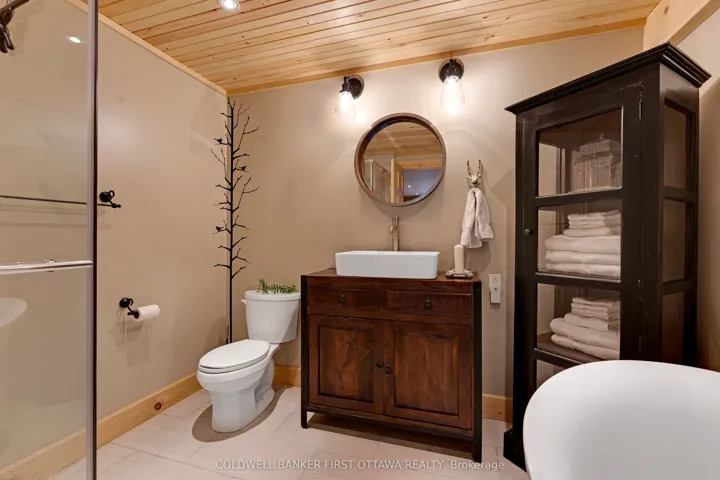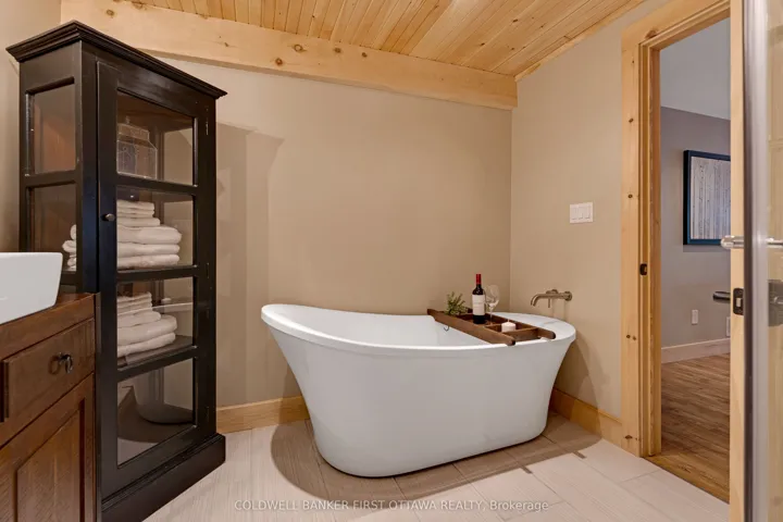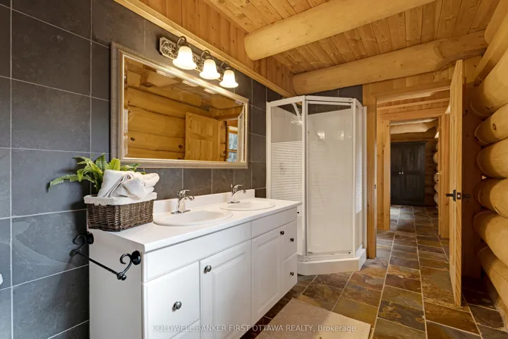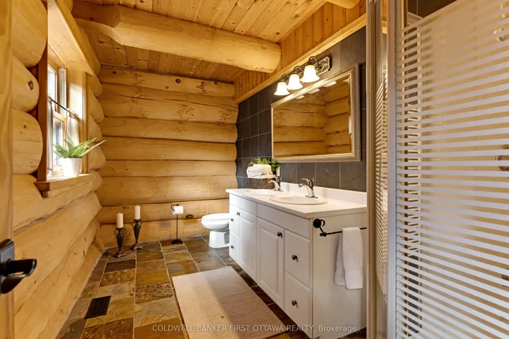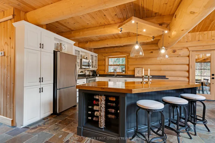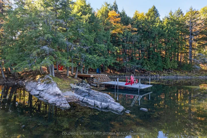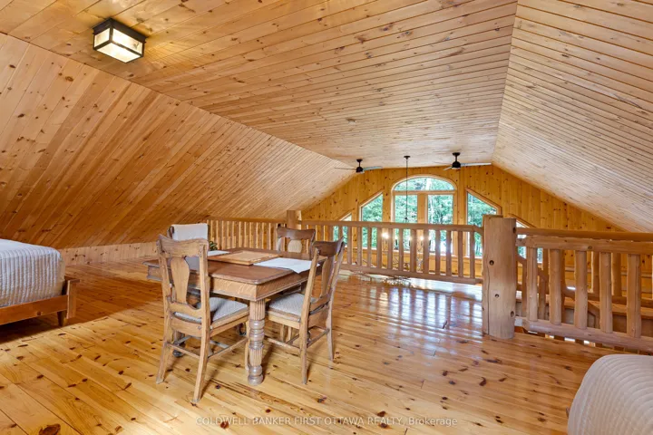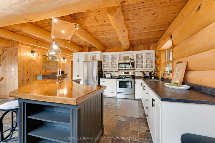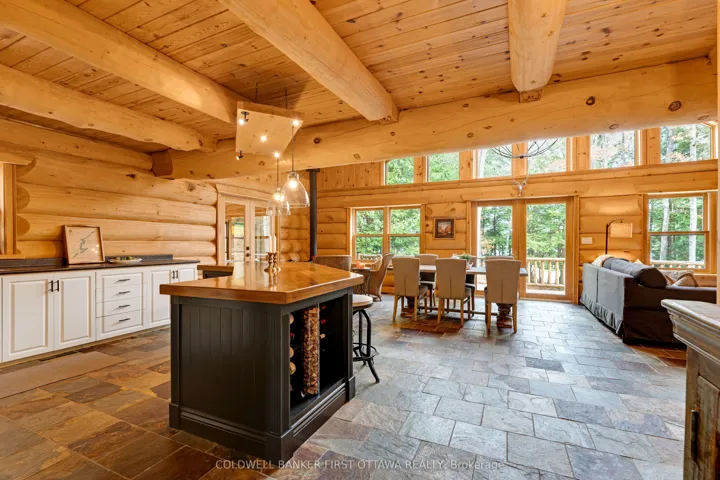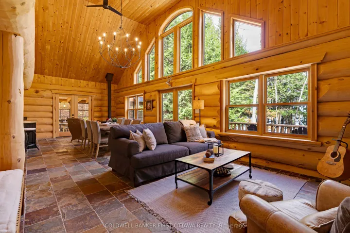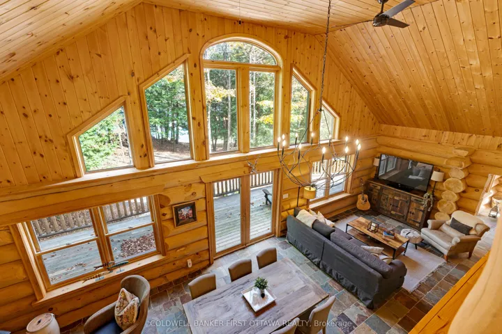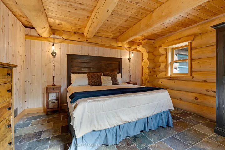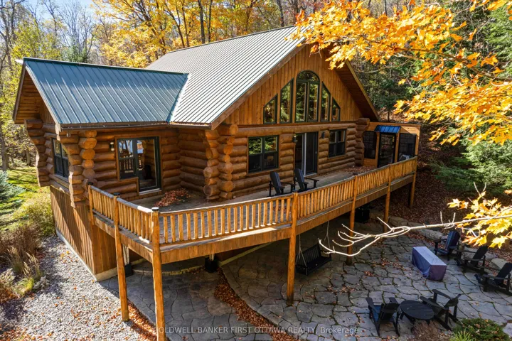 +"PublicRemarks": "Lakefront luxury living on 6 lovely acres along Bennett Lake. Located in prestigious Bennett Lake Estates, exceptional walkout Scandinavian log home with traditional warmth of log construction while offering bright contemporary spaces. The 4bed, 2 full bath home's honey-hue logs create light-filled airy rooms that enhance the grand open floor plan. Welcoming wrap-about deck opens to Great Room and kitchen featuring impressive slate floors and efficient Jotul fireplace stove. Cathedral ceiling 16' high, wall of soaring windows and garden doors to extensive, entertainment-sized, deck. Gleaming kitchen showcases upscale white cabinetry including elegant glass display cabinets; the complementary ebony toned island-breakfast bar is designed for casual dining or family gatherings. Sun soaked den/office has windows on all sides and garden door to upper deck. Wonderful sunroom with cascading Weatherwall windows and access to upper deck. Main floor primary bedroom and 4-pc bathroom with slate floor, two-sink vanity plus shower with slate wall. Upstairs is huge open loft for flex space or bedroom, with finished pine plank flooring. Lower level family room walkout double doors to covered stone patio with picture-perfect views of the lake. Lower level also has rec room, two bedrooms with sliding barn doors and 4 pc bathroom of porcelain sink, extra deep soaker tub plus rainhead glass shower. Detached double garage 60 amps with 250V, concrete floor and overhead heater. Attached to garage is charming covered porch, for times of quiet reflection. Both home & garage have metal roof. Waterfront 319', sandy, rocky and natural. Shoreline is shallow and then deepens. End of dock 8-10' for swimming, fishing & boating. Bennett Lake connects to Fagan Lake for extended boating. As resident of Bennett Lake Estates, you have deeded shared access to the community's two private waterfront lots, one with a boat launch. Private road with maintenance and snow plowing $450/year. 30 mins to Perth"