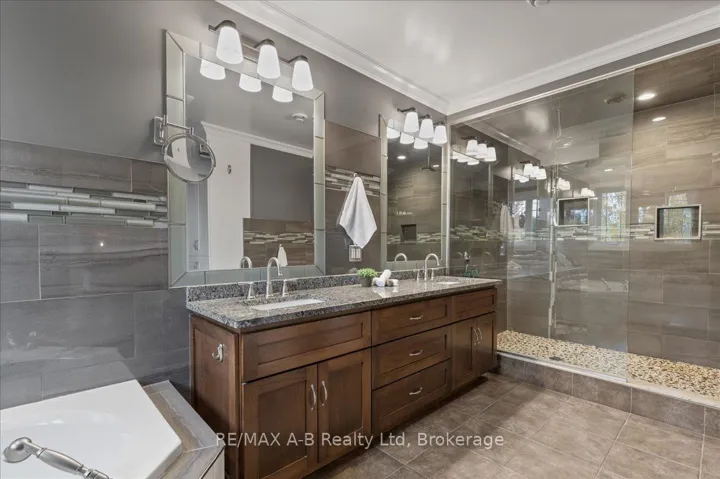 +"PublicRemarks": "Experience luxury and comfort in this stunning custom built executive 2-storey detached home, offering 5 spacious bedrooms and 4.5 bathrooms across 5,200 square feet of beautifully remodeled living space. Just 5 minutes from Stratford, this property welcomes you with impressive 20 ft ceilings in the great room and gleaming hardwood flooring throughout.The recently updated kitchen is perfect for culinary enthusiasts, while the elegant fireplace invites cozy gatherings with family and friends. Retreat to the luxurious primary suite for ultimate relaxation after a long day.Enjoy the benefits of energy efficiency, a steel roof, and in-floor heating on both the basement and main levels for year-round comfort. The 3-car attached garage and an expansive 32 x 57 shop provide ample RV storage and workspace. All of this is set on a generous 1.88-acre lot, offering privacy and space to enjoy.This meticulously maintained home is the perfect blend of sophistication and practicality-schedule your private showing today!"