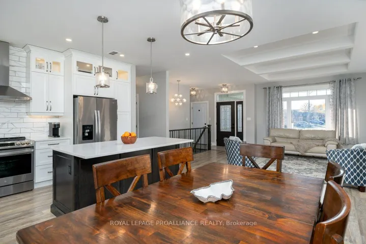 +"PublicRemarks": "Featuring ample amounts of upgrades throughout, step into this beautifully recently built home that feels like new! This home features 9-foot ceilings on the main floor, transom windows, bright kitchen cabinetry extending to the ceiling with crown molding, under-valance & upper cabinet lighting, quartz counters, a stylish tile backsplash + range hood, stainless steel appliances, & a large functional island. The open-concept layout showcases a tray ceiling in the living room, high-end laminate flooring that flows seamlessly on both levels, with stunning floor tiles in the 3 full bathrooms & designated laundry room. The spacious dining area opens to a deck overlooking a private backyard with no neighbours behind, ideal for relaxing, catching sunsets, or taking a dip in the pool. The primary bedroom offers crown molding, a spacious walk-in closet & a 3-pc ensuite with a glass & tile shower, while the 2nd 4-pc bath on the main floor includes a six-jet Jacuzzi tub. All the bathrooms in the home feature quartz counters & additional lighting in the showers/tubs. The lower level features a cozy rec room, three additional bedrooms (all with closets), a third 4pc bathroom, plus a dedicated laundry room with utility sink, along with plenty of storage space close by. With upgraded lighting throughout, a welcoming front porch, & thoughtful design details at every turn, this move-in-ready home perfectly combines modern living & a country feel with the backyard space. Only a one min walk from a 1.5-acre park with a play structure, perfect for kids, or grandkids, +within walking distance to the Trent River Trail, parks, splash pad, beach, & downtown, this home is also under 10 mins to Hwy 401 & only 15 mins to CFB Trenton & Belleville's Quinte Mall. Resting in a sought-after neighbourhood known for its welcoming community of families, professionals, & retirees, this home offers enjoyable living you'll love. We are finding that everyone that moves to this subdivision, loves it here!"