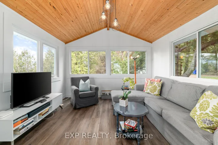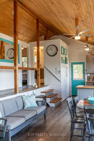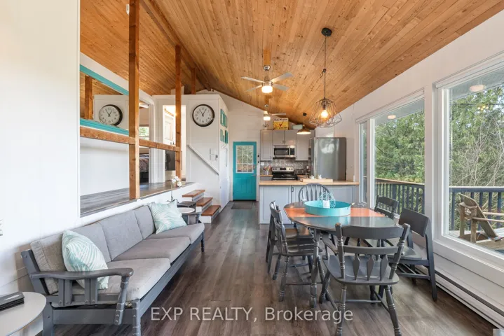 +"PublicRemarks": "This fabulous and stylish Licensed 3 season cottage (S.T.A. Short Term Accommodation) is ready and waiting for its next owners! Enjoy a light filled, open concept, 3 bedroom, 1 bath, cottage that is fully turn key. Being sold with all furnishings and decor so you can jump right in and enjoy your investment or family cottage. The Raven's Nest Cottage has been a bustling "Grandfathered Short Term Accommodation" for over 8 years, the income generation has been consistent and thriving since 2017. The views from every room calm your soul the moment you walk in, the wood-stove & baseboard heat in the central living area is perfect for any chilly nights. Updated kitchen, luxury vinyl floors throughout, cozy family room for movie nights and cottage games. Wood clad cathedral ceilings, newer metal roof, uv water filtration system, wrap around deck for sun tanning and BBQ days. Newly insulated walls/ceiling and a cozy wood stove have you half way there for winterizing, great potential to make 4 season. Follow the path from the large deck down to your campfire and swing area, continue down the trail to the lake & your chairs on the stone beach. Enjoy the expansive views and life by the lake! It never gets old. Sitting on a private lane with 3 other cottages, all properties have shared, waterfront access. The Raven's Nest, sits the most private of the 3, with tall cedars lining the property, and abundant perennial gardens meandering throughout. Friends and guests will love this perfect little oasis! Income generating from Spring to Fall or enjoy this perfect retreat for yourself. Rental contracts can be discussed further wether desired or not."