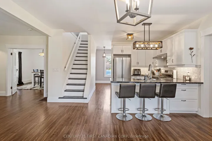 +"PublicRemarks": "Discover incredible value in this thoughtfully updated home, where timeless style meets the character and warmth of a century home - perfectly situated in a central location! Step inside this beautifully refreshed home and you'll instantly notice the perfect blend of character and style. From the white shaker kitchen cabinets with stainless steel appliances, gas range, and breakfast bar, to the large living area filled with natural light, every corner feels warm and inviting.Throughout the home, you'll find thoughtful updates like luxury vinyl plank flooring, newer windows, stylish light fixtures, and wrought iron spindles, all while preserving original details like the oversized baseboards, grates, exposed brick, and gorgeous woodwork throughout. Need flexibility? The main floor offers a versatile space that can be a formal dining room or a spacious main floor bedroom - your choice! Plus, with newer siding, all updated appliances (including washer and dryer), and a deceivingly spacious lot surrounded by mature trees, this home is truly move-in ready. Enjoy summer BBQs on the side deck, morning coffee on the covered front porch or second level, private balcony and the peace of mind that comes with a lovingly maintained property. Located just steps from Our Lady of Mount Carmel Catholic Elementary School, complete with a full playground, baseball diamond, and plenty of green space. You're also perfectly situated only 15 minutes to the beautiful beaches of Grand Bend and 15 minutes to the charming community of Exeter.This is small-town living with style, space, and soul. Don't miss it! Home Tour Here:https://youtu.be/ob Od C_asdhc"
