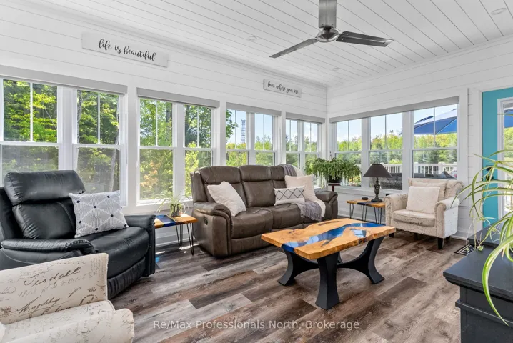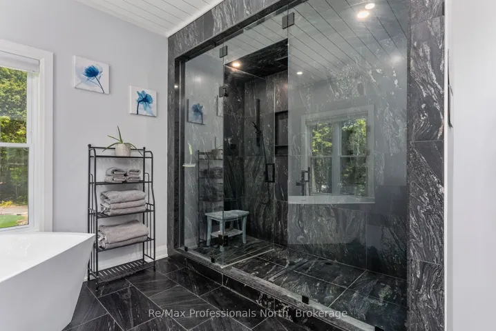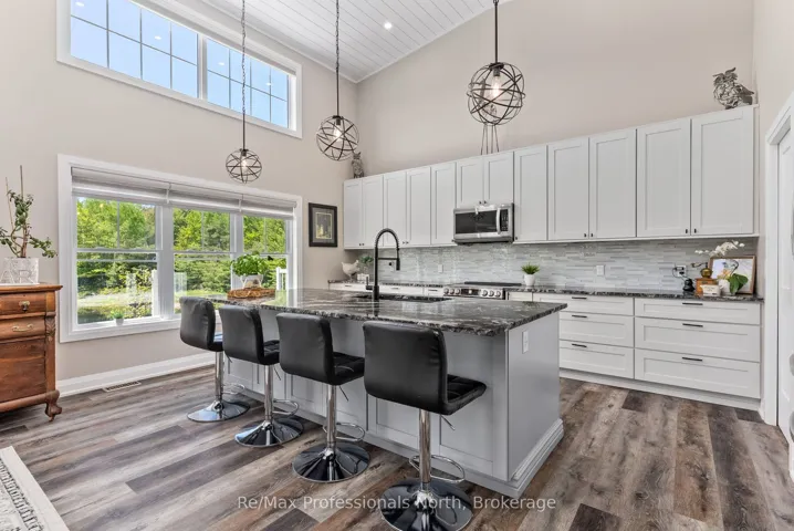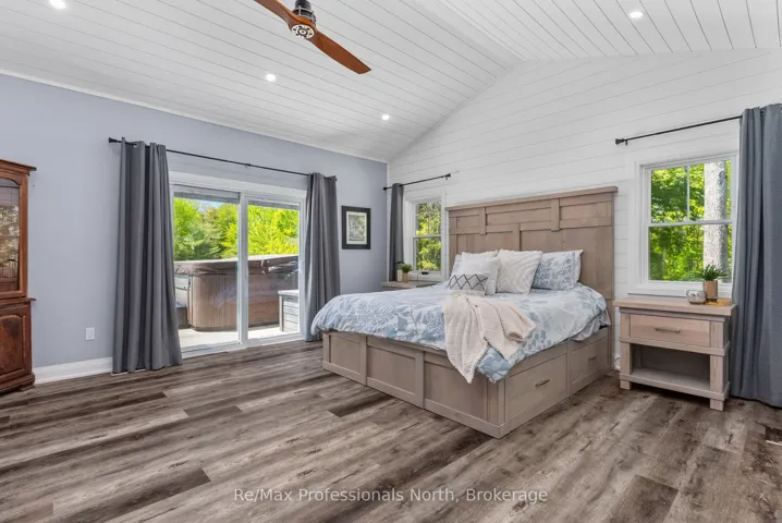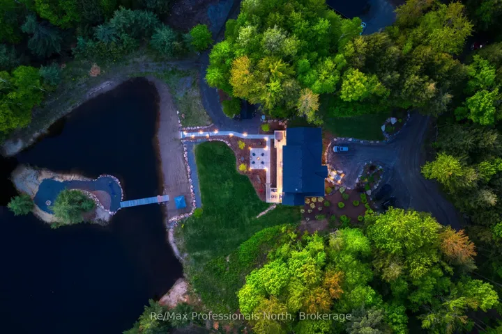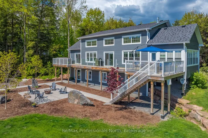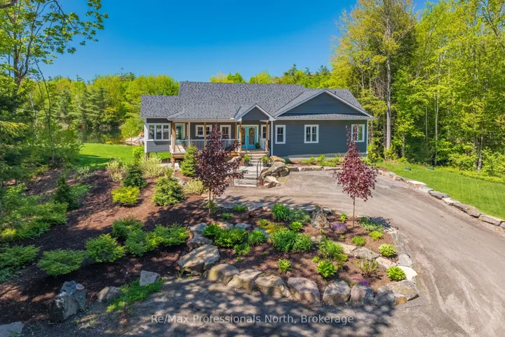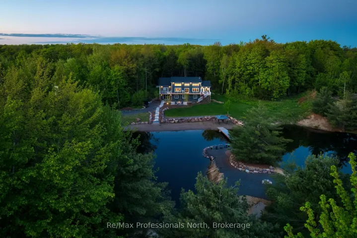 +"PublicRemarks": "Welcome to 1076 Xavier Street situated in one of Muskoka's most desirable executive enclaves, an exceptional custom-built estate set on 7.17 acres just south of Gravenhurst's downtown. Set back from the road and hidden from view, this 2022-built home offers rare seclusion with a long granite-lined driveway, scenic pond with sandy beach and island, stunning outdoor living, and a 40' x 60' heated shop creating a Muskoka retreat that feels like your own private resort. A dramatic granite staircase leads to a covered front porch and into 3,602 square feet of beautifully finished space across two levels. Vaulted shiplap ceilings, expansive windows, and a striking black propane fireplace framed by floor-to-ceiling white shiplap define the great room. The entertainers kitchen features chiseled-edge granite throughout, including a statement island ideal for hosting. From the dining area, step out to a rear deck that spans the entire back of the home and overlooks your firepit sitting area, a tranquil pond, beach, and landscaped island framed by mature forest. A footbridge invites exploration, where the second firepit and Muskoka chairs offer the perfect vantage point for morning coffees or evening stargazing. The insulated Muskoka room offers passive climate flow from the home, a supplemental electric fireplace, and access to both decks. The private primary suite features direct access to the deck and hot tub, a walk-in closet, and a spa-inspired 5-piece ensuite. The fully finished walkout lower level offers a large rec room, two additional bedrooms, a full bath, and direct access to the backyard. At the rear of the property, a 40' x 60' heated shop includes 12' doors, hydro, and 3 piece bath ideal for the hobbyist, recreational gear, or as a private workspace and storage haven. A Generac backup generator provides year-round peace of mind. This is more than a home; it's an experience offering refined living, captivating scenery, and complete privacy in an exclusive setting."