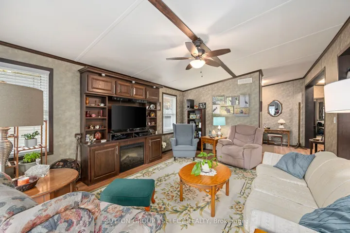 +"PublicRemarks": "Wish you were here! Twin Elm Estates is a premiere Adult Lifestyle Community located in Strathroy - minutes to shopping, restaurants, hospital and golf! This home sits on a beautiful large lot featuring a blue spruce in the front yard. Covered large porch on the front of the home allows for lots of outdoor relaxation. Porch opens to 4 season sunroom. Spacious newer kitchen with ample cupboard space and separate dinette area. Large Living Room offers a cozy gas fireplace. Separate den or office. 2 bedrooms with closets. Newer 3-piece bathroom with a walk-in shower. 2-piece bathroom. Interlocking large brick driveway. Fees for New Owners are - Taxes -$100.50/month, Land Lease - Approximately $691/ month and can be assumed."