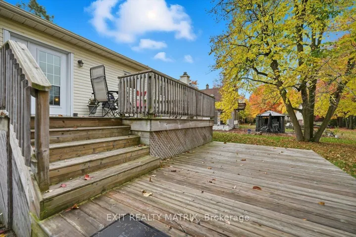 +"PublicRemarks": "Immaculate and spacious, this beautifully maintained home is set on a generous, tree-lined lot with mature landscaping, providing both curb appeal and lovely outdoor privacy. The main floor offers a bright and inviting living room with beautiful hardwood flooring and a large picture window. The hardwood continues into the recently updated kitchen, complete with a pantry and an open layout connecting to the dining area, which features patio doors leading to the deck - perfect for indoor-outdoor entertaining. Three spacious bedrooms and a full bathroom complete the main floor, offering comfort and convenience for family living. The recently finished lower level (2023) offers endless possibilities with its spacious 27'10" x 25'9" layout. It features a bar area, cozy wood stove, a full 3-piece bathroom, a large utility room, and the potential to create a fourth bedroom - ideal for guests, hobbies, or additional living space. The generously sized deck is perfect for summer barbecues, morning coffee, or simply unwinding outdoors. The surrounding yard provides plenty of green space for play, gardening, bonfires or watching the sunsets. Whether you're hosting friends on the deck or letting kids or pets roam freely, the outdoor setting complements the home beautifully and enhances your lifestyle. The oversized detached single garage features dual overhead garage doors (front and rear) for ease of access and great flexibility-ideal for vehicles, hobby space or storage. Easy access to nearby schools, Keith M. Boyd Park & playground, 10 km paved New York Central Recreational Trail, Arena, Sports dome and soon to be Recreation Complex with 3 ice rinks, a 25-meter indoor pool & more, giving you both convenience and adventure. Just a short drive to Ottawa-making commuting or city-access a breeze, while enjoying small-town charm and atmosphere. great for families or those seeking calm and community. Pride of ownership truly shows!"