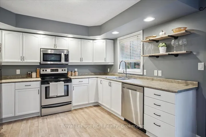 +"PublicRemarks": "Welcome to this fabulous 5-bedroom, 2-bathroom raised bungalow located in one of Owen Sound's most popular east side neighbourhoods! You'll love the inviting feel from the moment you step inside, bright, stylish, and ready to impress. The spacious living room features a large picture window that overlooks the beautiful backyard, filling the space with natural light. A cozy gas fireplace adds warmth and charm, making it the perfect spot to relax with family or friends. The bright kitchen with its white cabinets is both functional and fresh, complete with stainless steel appliances and a built-in desk that's perfect for meal planning, recipe browsing, or keeping the family organized. The dining area opens to the backyard deck through sliding doors, making indoor-outdoor living a breeze, ideal for summer barbecues or quiet mornings in the sunshine. The large primary bedroom offers a peaceful retreat with a walk-in closet and a semi-ensuite bath. Two additional bedrooms on the main level provide flexibility for family, guests, or a home office. Downstairs, you'll find two more bedrooms, a second gas fireplace in the family room, and a walkout to the backyard, great for teens, extended family, or a cozy movie night. Outside, enjoy a private, tree-lined backyard perfect for play or relaxation. This home is just minutes from Notre Dame Catholic School, east side shopping, restaurants, and the Kiwanis Soccer Complex. With its lovely décor, thoughtful layout, and prime location, this one checks all the boxes for comfortable family living!"