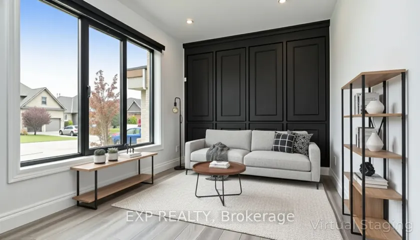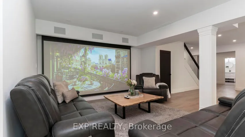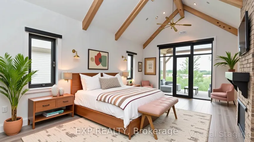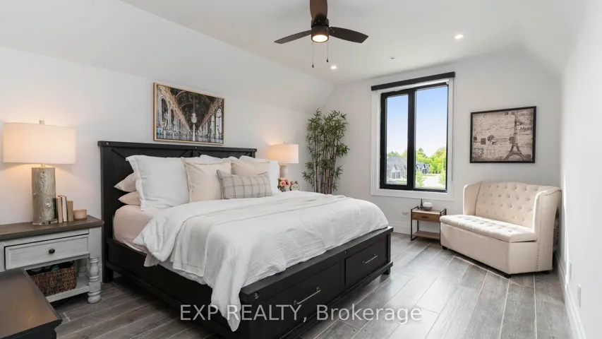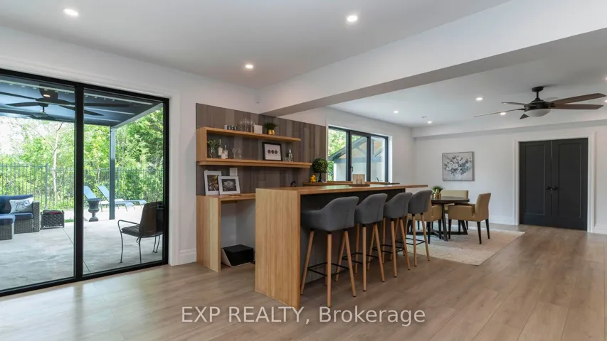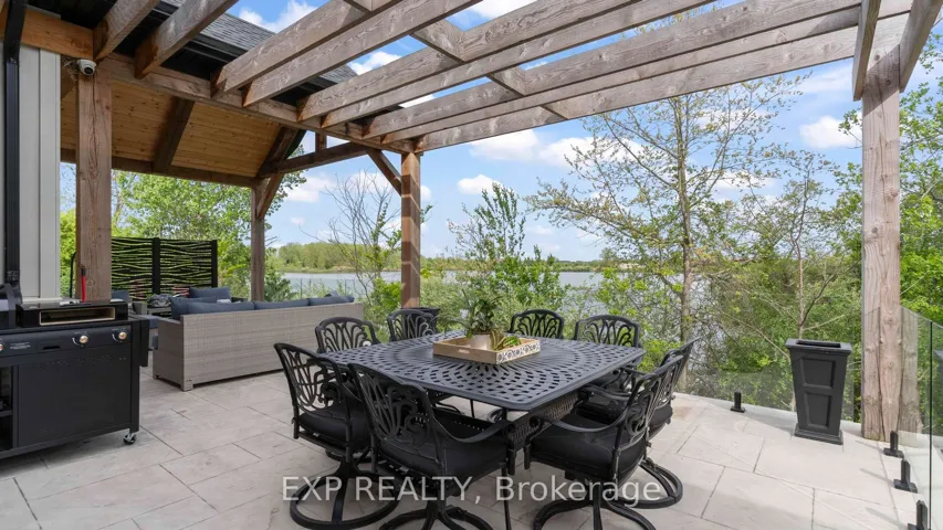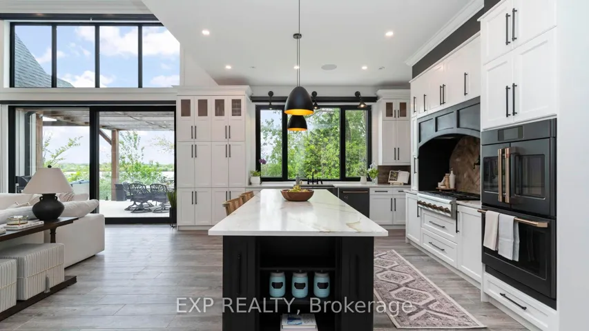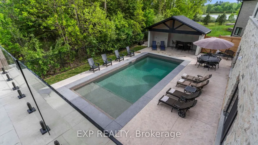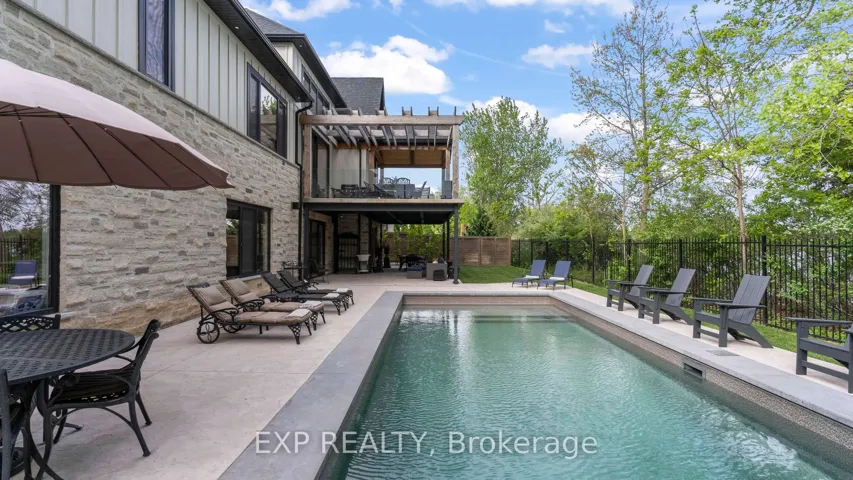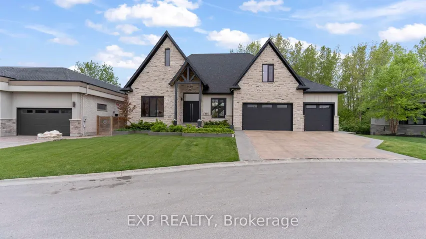 +"PublicRemarks": "Welcome to Bella Lago Estates - an exclusive community featuring 29 custom homes situated on a quiet cul-de-sac. This stunning bungaloft showcases exceptional craftsmanship and timeless design from the moment you arrive. The over-grouted stone façade, curved concrete driveway, landscaped garden walls, and landscape lighting create an impressive and inviting first impression. The attached 3.5-car garage with keyless/fob entry adds both convenience and functionality.Inside, the thoughtfully designed open-concept layout offers a perfect blend of style and comfort. Heated floors span all three levels, and a built-in sound system enhances daily living from morning to night. The kitchen features a grand centre island and seamlessly opens to the 16-ft family room with custom built-ins and a brick fireplace - ideal for entertaining or relaxing with family. Expansive 14-ft sliding patio doors lead to your private outdoor retreat. Enjoy the stamped concrete terrace, pergola, and saltwater pool, all set against tranquil pond views. The fully fenced yard offers ample space for recreation, while the cabana with lighting creates the perfect setting for evening gatherings.The primary suite offers beamed cathedral ceilings, a fireplace, patio access, and a luxurious ensuite with a freestanding tub, double vanities, rain shower, and walk-in closet. Two additional bedrooms with custom walk-in closets, an office, and a mudroom with a dog shower complete the main level.The walkout lower level adds even more living space, featuring a full gym, theatre area, wet bar, guest suite, bonus room, two bathrooms, cold cellar, and abundant storage. European windows, upgraded insulation, and a full security system contribute to the home's efficiency and peace of mind. Experience refined living in a sought-after community - where thoughtful design and modern amenities come together in perfect harmony."
