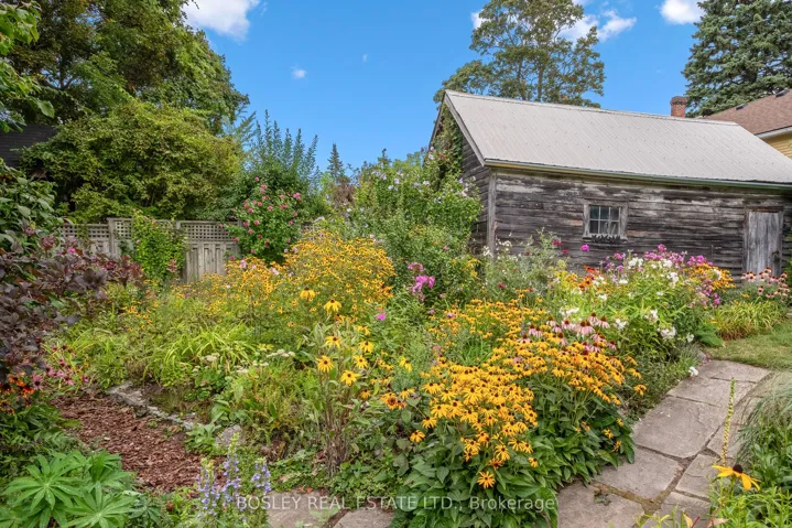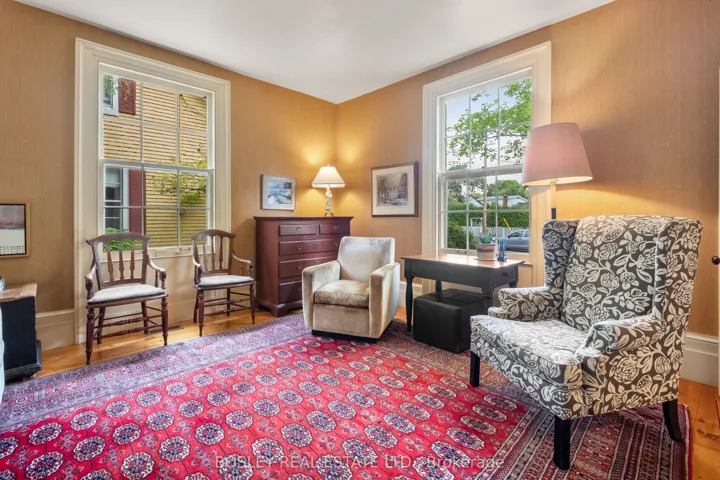 +"PublicRemarks": "Nestled in the desirable west end of Port Hope's Englishtown, this rare 1860s wooden Ashlar residence beautifully combines historic character with modern comfort. Thoughtfully restored "back to the bones" under its current ownership-with updated electrical, insulation, and plumbing-this home stands out as one of the few remaining examples of its kind in the area.Inside, expansive original windows fill the rooms with natural light, creating bright and airy interiors. The main floor features a welcoming eat-in kitchen located in the rear tail, just steps from a lush private perennial garden and a detached garage. A versatile library or den on this level, complemented by a full bath, offers the flexibility for a main-floor bedroom if desired.Upstairs, two inviting bedrooms include a spacious, double-sized primary suite, with another full bathroom conveniently nearby.Perfectly situated just steps from Walton and Ridout Streets, this well-maintained home offers easy access to Port Hope's historic downtown, the Capitol Theatre, and is only a short drive to Trinity College School. Surrounded by other distinguished period homes, this property presents a rare opportunity to own a piece of Port Hope's history in one of its most charming and sought-after neighbourhoods."