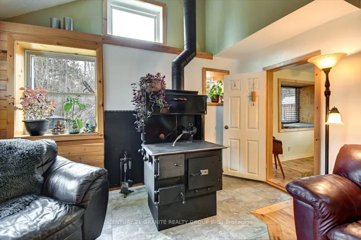+"PublicRemarks": "Executive Lease Opportunity. Position your lifestyle in a country haven that blends modern comfort with timeless charm. Newly renovated in 2017, this open-concept residence offers soaring ceilings, hand-hewn beams, and hardwood floors that reflect its refined craftsmanship. The spacious layout encourages both family connection and private retreat, while the sunroom and decking provide the ideal setting for morning coffee, summer entertaining, or quiet evenings beneath the stars. The home features two bedrooms, a spacious upper retreat, and a cozy lower-level room perfectly suited for guests, a home office, or creative workspace, a full bathroom completes the space. An efficient combination of heat pump, woodstove, and cookstove ensure year-round comfort and cost-effective warmth. Every space feels thoughtful, practical, and inviting. Outdoors, the property delivers a true rural sanctuary. Perennial gardens, raised beds, and fruit trees complement a green house ideal for extended growing seasons. A firepit invites evenings spent under wide open skies surrounded by nature and tranquility. The setting is enhanced by the regular presence of wildlife, offering a constant connection to nature at its finest. Situated on a year-round municipally maintained road and on a school bus route, this property combines serenity with accessibility. Conveniently located equidistant from the conveniences of Bancroft and Barry's Bay in the scenic Boulter Hills, the property is just minutes from the Conroy Marsh Conservation Reserve, Foster Lake Beach, and OFSC snowmobile trails, making it the perfect base for outdoor recreation year-round. This exceptional lease opportunity appeals to discerning, qualified lessees seeking a refined rural lifestyle. Perfect for a small family, professional, or anyone desiring a private retreat surrounded by nature, this property is ready for immediate occupancy. Private tours are available by appointment only to prequalified lessees."