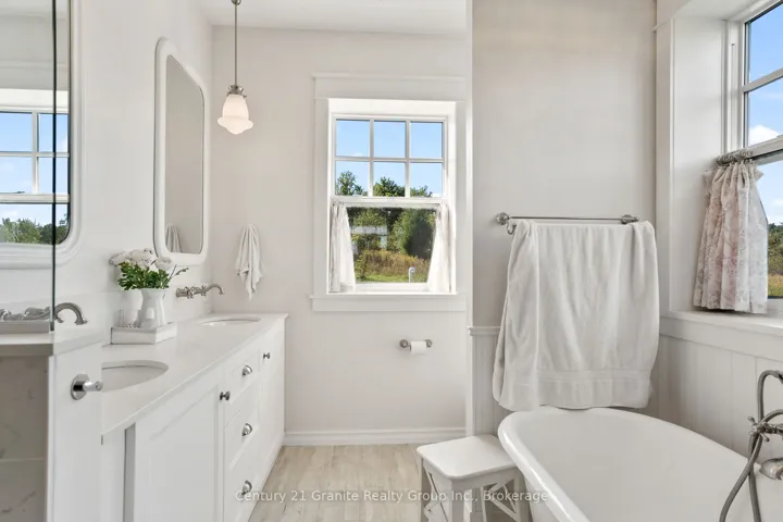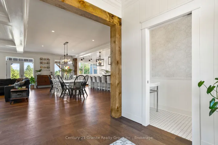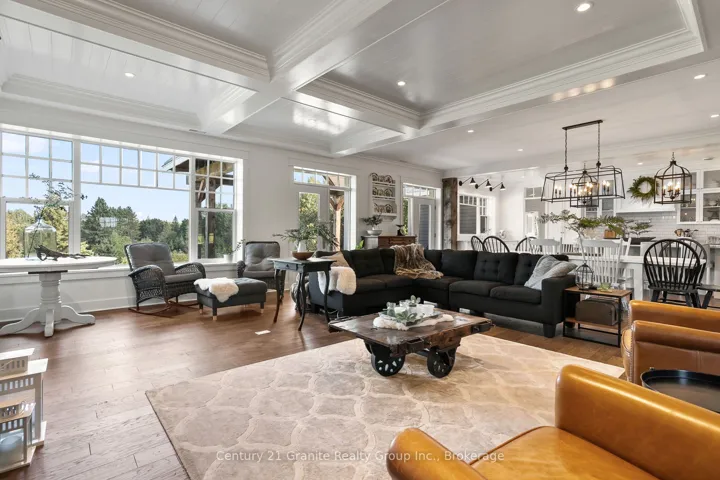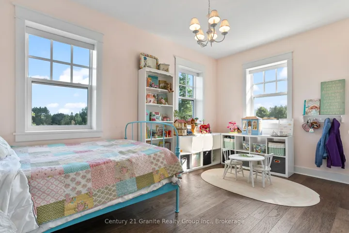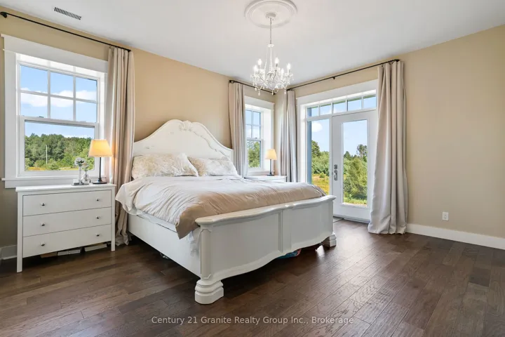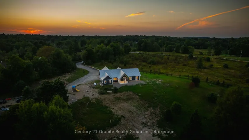 +"PublicRemarks": "Experience luxury and tranquility in this meticulously crafted home, nestled on 4.5 acres just minutes from Haliburton in the exclusive Gainforth Estates neighbourhood. Completed in 2022, this 4 bedroom and 2.5 bathroom bungalow has been built using only the finest materials, with no detail overlooked and no expense spared. This property offers a serene escape with direct access to 41 acres of adjacent shared parkland including trails and a beautiful deep water pond for swimming, fishing, canoeing and kayaking - a nature lovers paradise! With nearly 3000 square feet of refined living space on one floor, this home exudes both grandeur and warmth. A spacious foyer leads into the the open concept living space which was designed for entertaining with its impressive 10-foot ceilings, bespoke millwork, timber-frame accents, floor-to-ceiling propane fireplace and extensive windows and multiple walk-outs for easy access to the covered porch and bright, southerly views over the stunning property. The custom kitchen offers quartz counters, built-in panelled appliances, an oversized island with seating for 5 and the bonus of a butler's pantry with laundry for additional storage and prep space. The primary suite features an office space, walk-out to the backyard and an extraordinary spa-like ensuite with curbless shower, dual sinks and freestanding soaker tub. Three additional spacious bedrooms and a 5-piece guest bath complete this perfectly laid-out home. This home is also wheelchair accessible. Additional features include: engineered hardwood and tile floors throughout with radiant in-floor heat, forced air propane furnace and central air, oversized septic and dug spring-fed well for exceptional water quality and supply. An attached garage provides convenient parking, additional storage and direct access to the mud room. Enjoy this perfect blend of luxury and nature for years to come."