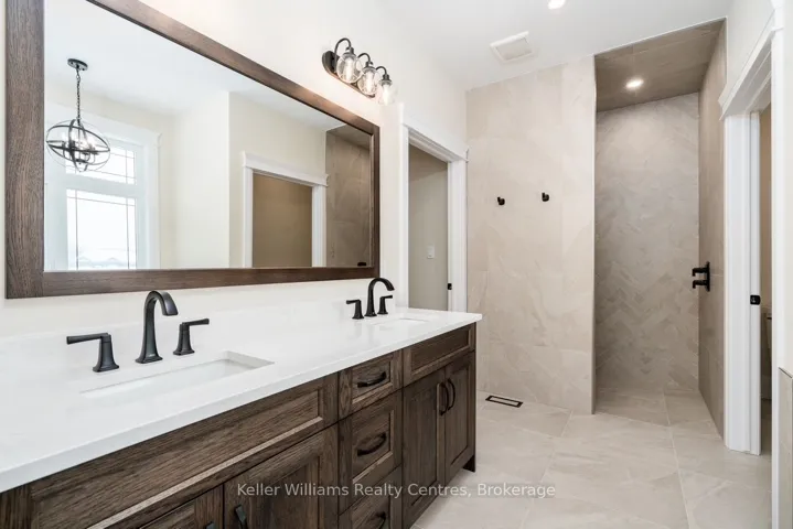 +"PublicRemarks": "Every detail of this one-of-a-kind riverfront bungalow in Hanover has been well thought out. From the open concept layout with 16 ft entry, to the generous extras including a large walk-in pantry, composite deck with stairs to the lower yard, spray foamed walls and a storage garage accessible from the back of the home for kayaks and more.... here you'll find only high-end finishes. Engineered hardwood floors on the main level, vaulted living room ceiling, custom kitchen cabinetry, stone countertops, backsplash, 2 stone gas fireplaces, exterior glass railing, and more! The main level offers 3 bedrooms and 2 baths including the primary suite with double sinks, soaker tub, curbless tiled shower and walk-in closet. Patio doors from the dining area lead to the large L-shaped upper deck with gas hookup for your bbq and views of the trees. Laundry is conveniently located in the main level mudroom. The lower level is a walkout offering in-floor heat, 2 more bedrooms, a third bath, spacious recreation room with patio door, and lots of room for storage. The attached 2 car garage offers a storage nook, in-floor heat and access to the back deck. Home comes with Tarion Warranty, concrete driveway, and sodded and landscaped yard. You cant beat the riverfront location, a perfect access point for paddle sports and great depth for swimming. Dont miss the opportunity to be the owners of this impressive property!"