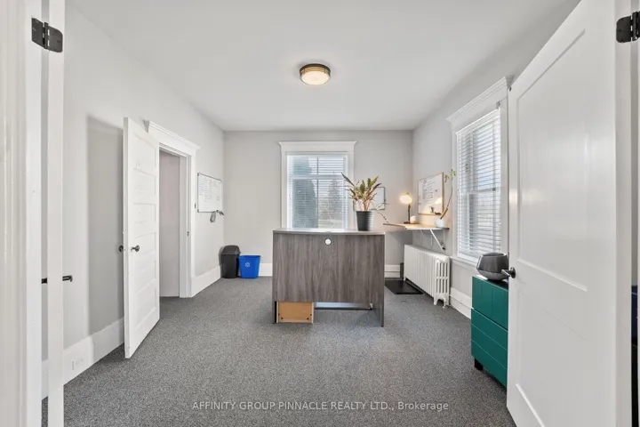 +"PublicRemarks": "Welcome to this versatile mixed-use Building (MRC Zoning) with modern finishes and exceptional visibility, offering a unique opportunity for business owners, investors, or live-work entrepreneurs looking for an office space or studio. The main level is thoughtfully designed with a warm and inviting reception area, complete with a stylish 2-piece bath and convenient wet bar. Two private office spaces provide quiet, focused work environments, while the spacious, open-concept area is ideal for team collaboration or client meetings. With double doors, this versatile space can also serve as additional private offices if needed. Downstairs, the finished basement includes a full 4-piece bathroom and a flexible area thats ideal as a staff lunchroom, storage space, or bonus workspace. Upstairs, discover an oversized 1-bedroom, 1-bath apartment. With its own private entrance, this self-contained unit boasts a spacious living area, in-suite laundry, a fabulous finished loft space and separate hydro meter. One gas/water meter for whole building. Additional highlights include wheelchair-accessible rear entry, ample client parking, and a professional yet welcoming atmosphere throughout. Don't miss this rare opportunity to own a stylish, multi-functional property thats as practical as it is impressive."