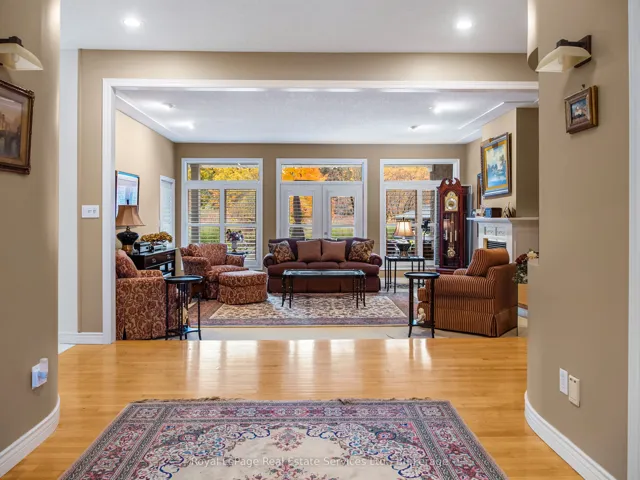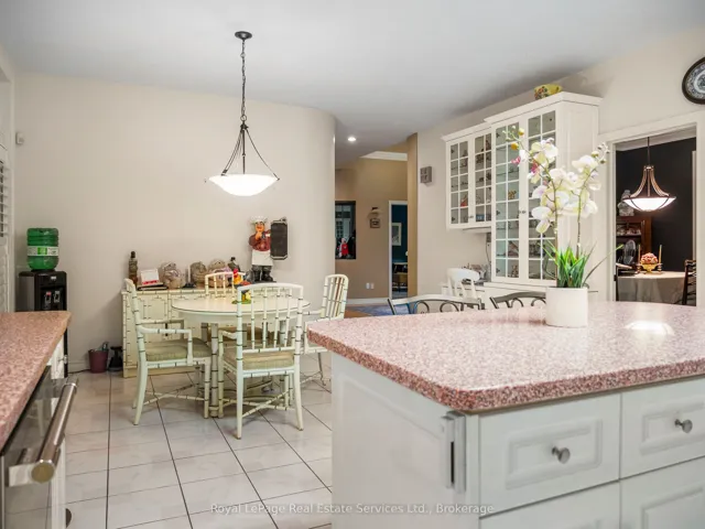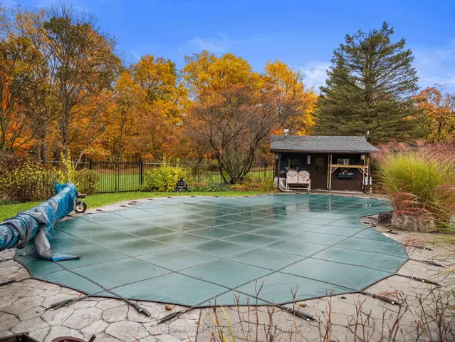 +"PublicRemarks": "Welcome to 47 Fox Run Drive, an amazing over 4000 sq ft 'bungaloft' nestled on a treed and landscaped over 1 acre lot backing onto a protected forest area. An easy flowing design with 4 bedrooms and 5 Bathrooms A winding walkway leads to the custom double door entry to the spacious Foyer. To the left is the separate Dining Room and to the right the main floor Family Room. Straight ahead is the beautiful Living Room with tall cathedral ceiling and gas fireplace that overlooks the massive garden with salt water pool, screened in Gazebo and Cabana and covered deck. The gleaming white Kitchen features granite counters, centre island, eating area and walkout to covered deck. Tall ceilings continue into the Primary Bedroom which is located at the back of the house also overlooking the gardens with another walkout and a 4 piece ensuite bathroom. There are an additional bedroom (currently used as office) on the main level as well as a 4 piece semi-ensuite bathroom. The main surprise is the separate entrance to an in-law/nanny suite/area which has a 3 piece bathroom, two Bedrooms, Office and Sitting Area.. All necessities are a short drive away and major highways are close. This is a 'must see' home waiting for your visit."